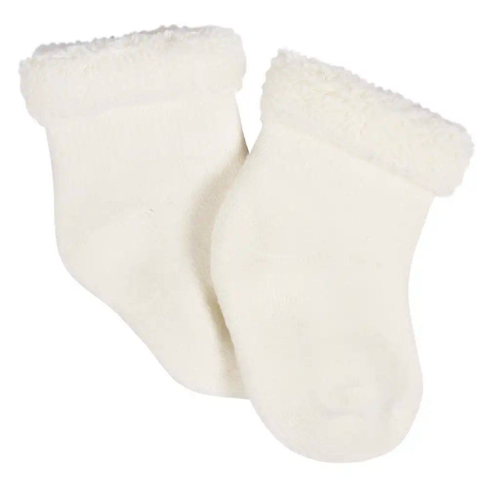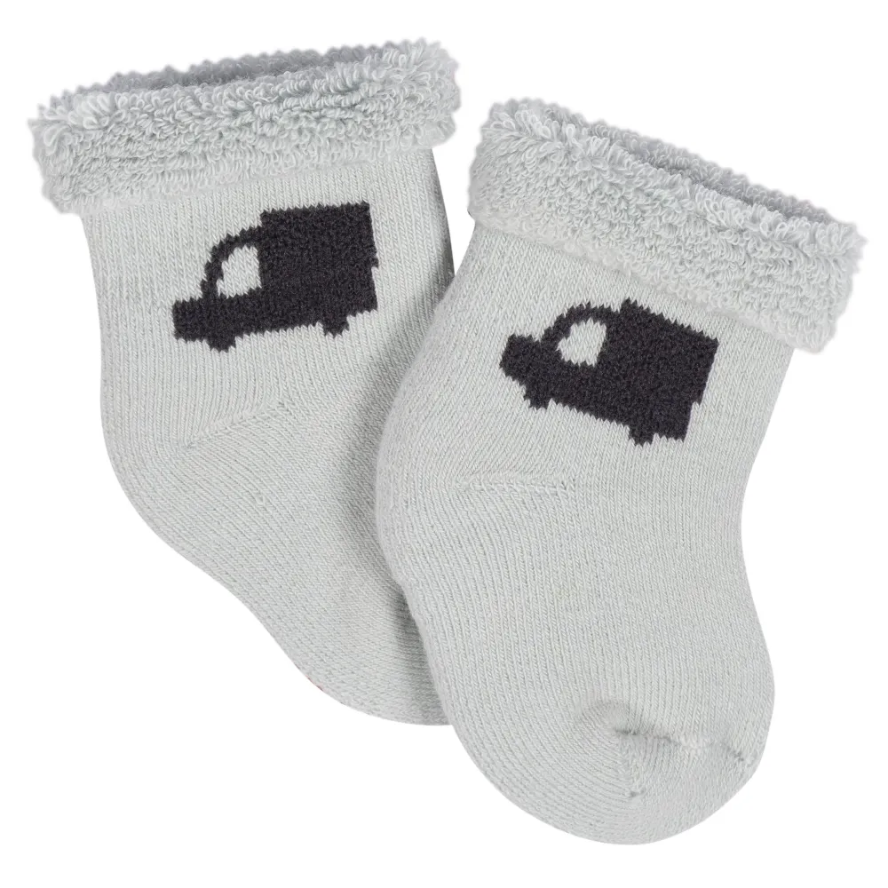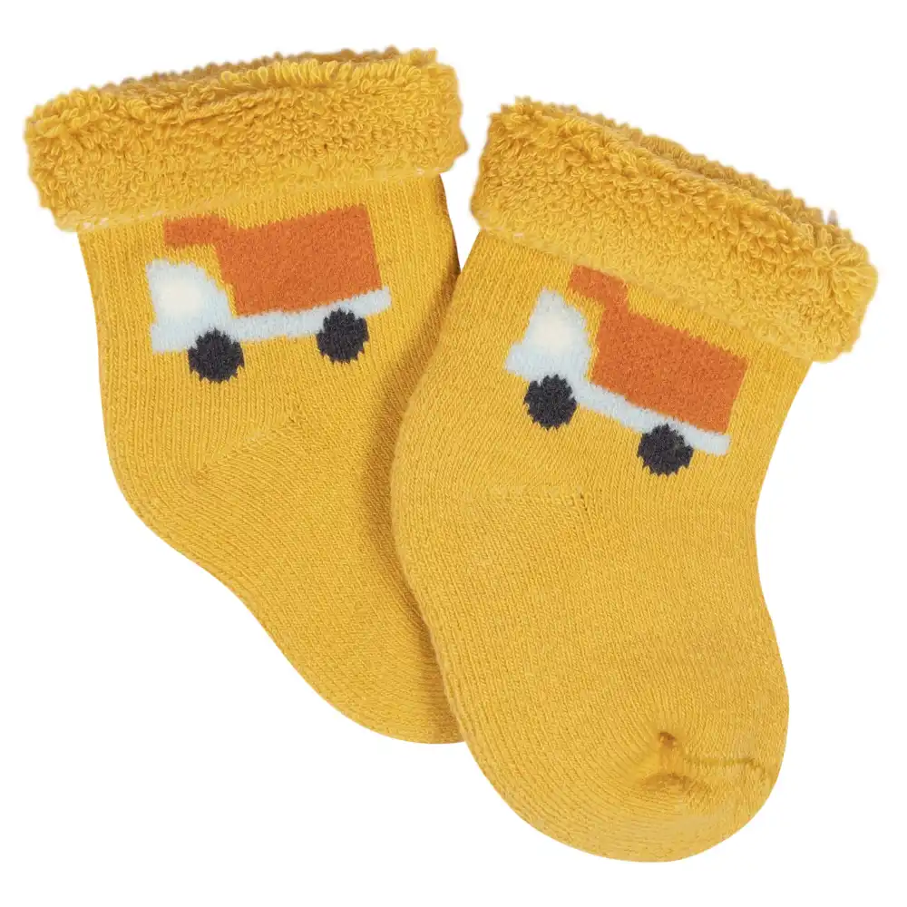 Our Wiggle Proof® socks stay right where they’re meant to, on baby’s feet! Each pair is made with soft, stretchy fabric to cradle those tiny toes in nothing but comfort. We use STANDARD 100 by OEKO-TEX® certification on products tested in an independent laboratory against a list of more than 400 harmful substances, including PFAS. This pack includes 12 pairs of terry bootie socks with cars and trucks themed art.