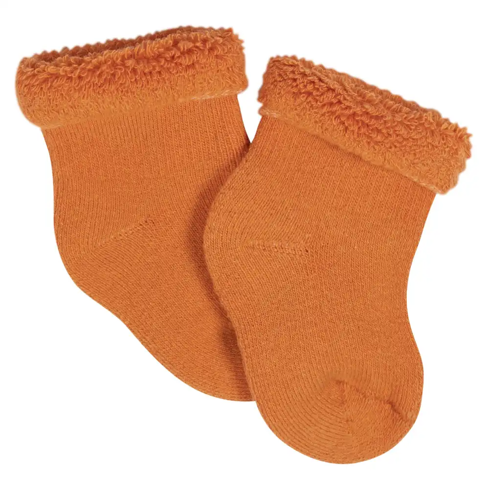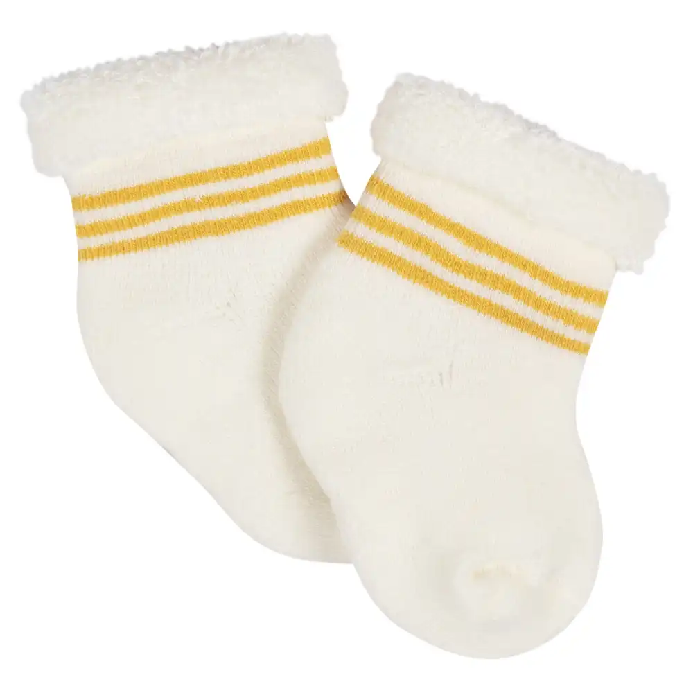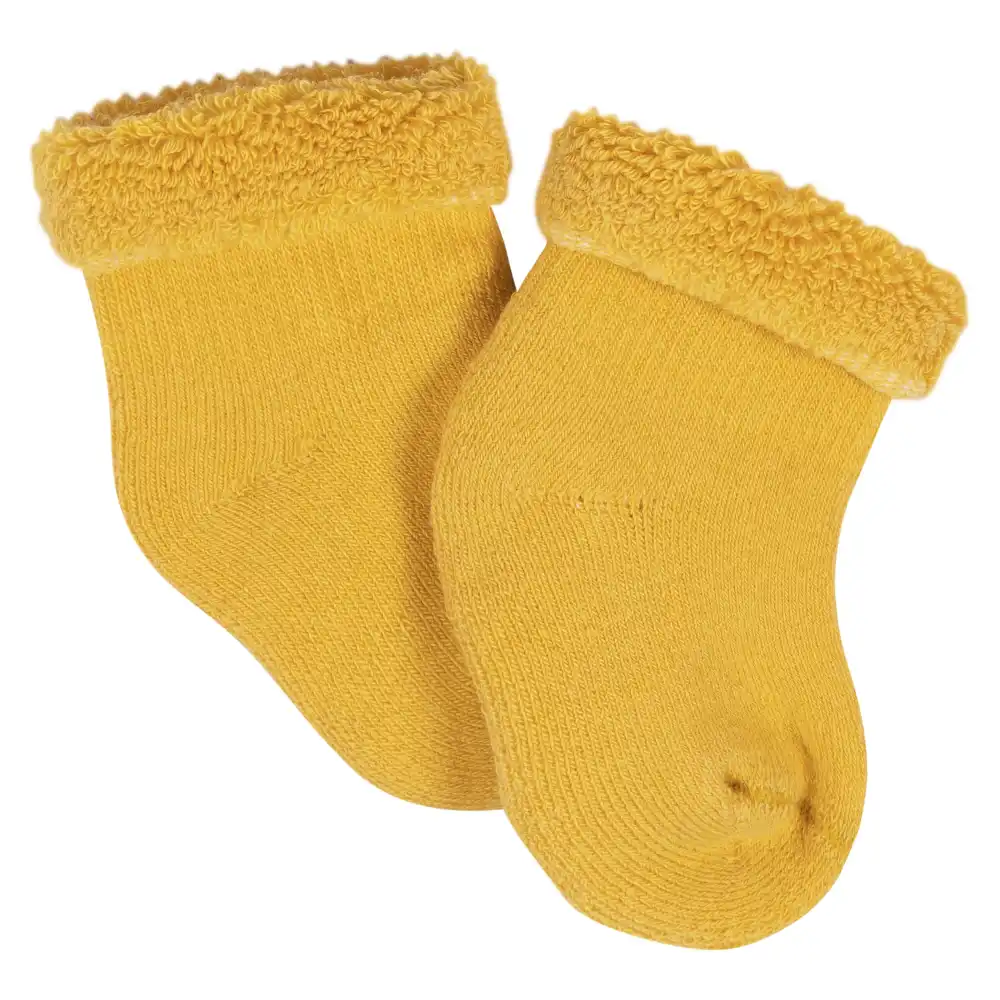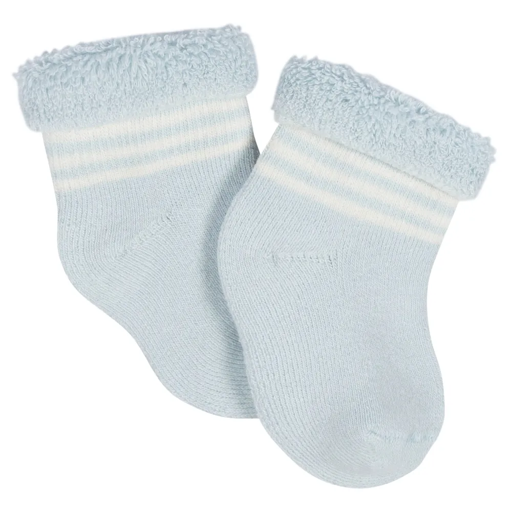 Our Wiggle Proof® socks stay right where they’re meant to, on baby’s feet! Each pair is made with soft, stretchy fabric to cradle those tiny toes in nothing but comfort. We use STANDARD 100 by OEKO-TEX® certification on products tested in an independent laboratory against a list of more than 400 harmful substances, including PFAS. This pack includes 12 pairs of terry bootie socks with cars and trucks themed art.