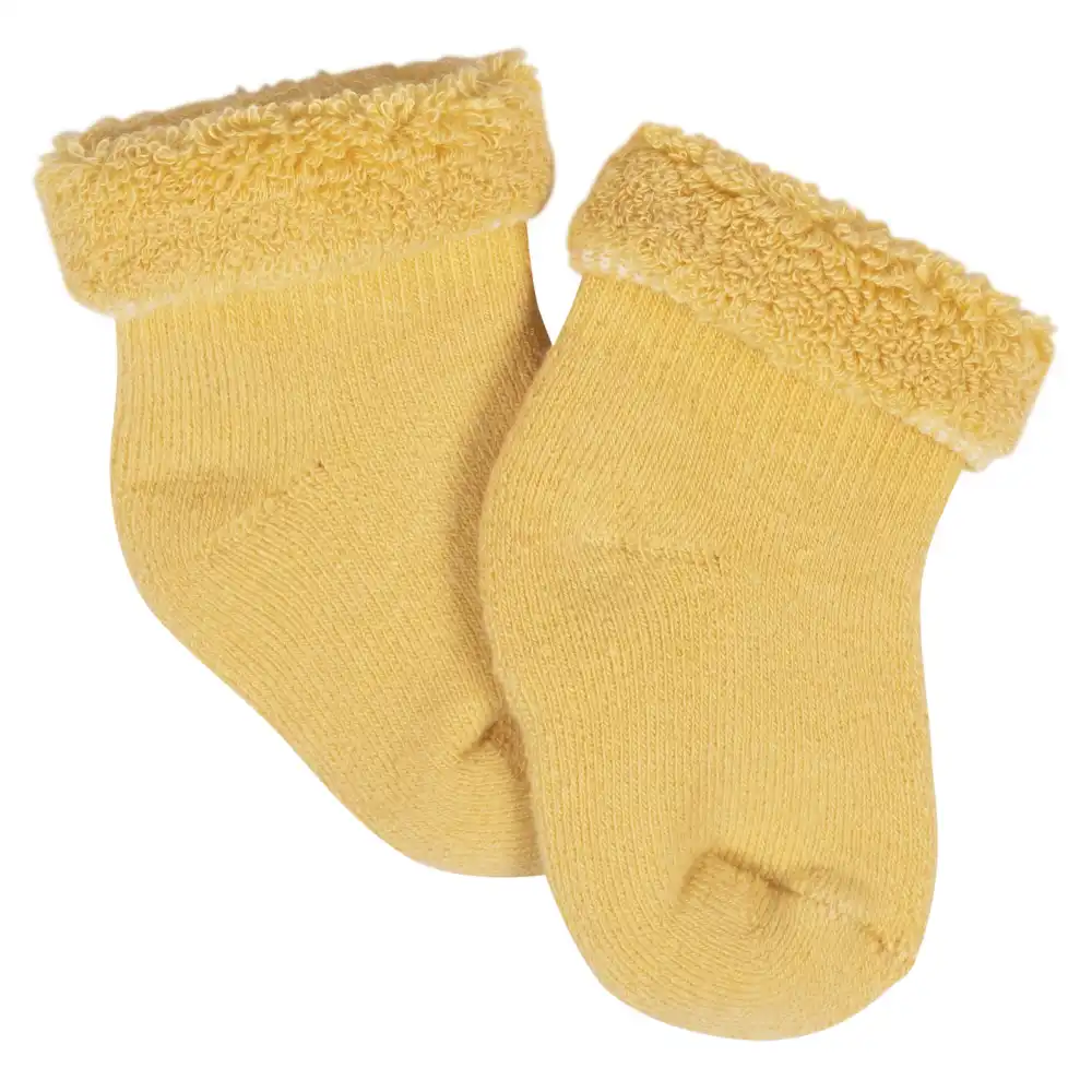 Our Wiggle Proof® socks stay right where they’re meant to, on baby’s feet! Each pair is made with soft, stretchy fabric to cradle those tiny toes in nothing but comfort. We use STANDARD 100 by OEKO-TEX® certification on products tested in an independent laboratory against a list of more than 400 harmful substances, including PFAS. This pack includes 12 pairs of terry bootie socks with rainbow and floral themed art.