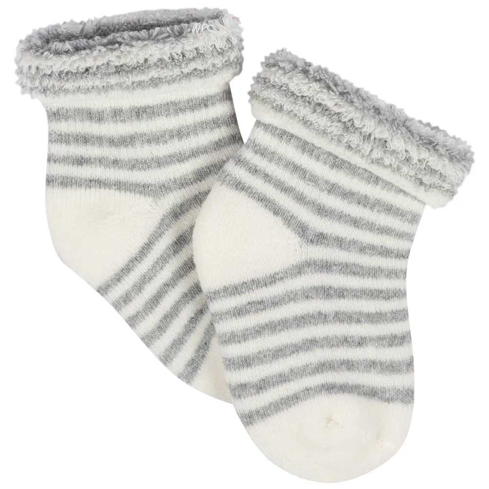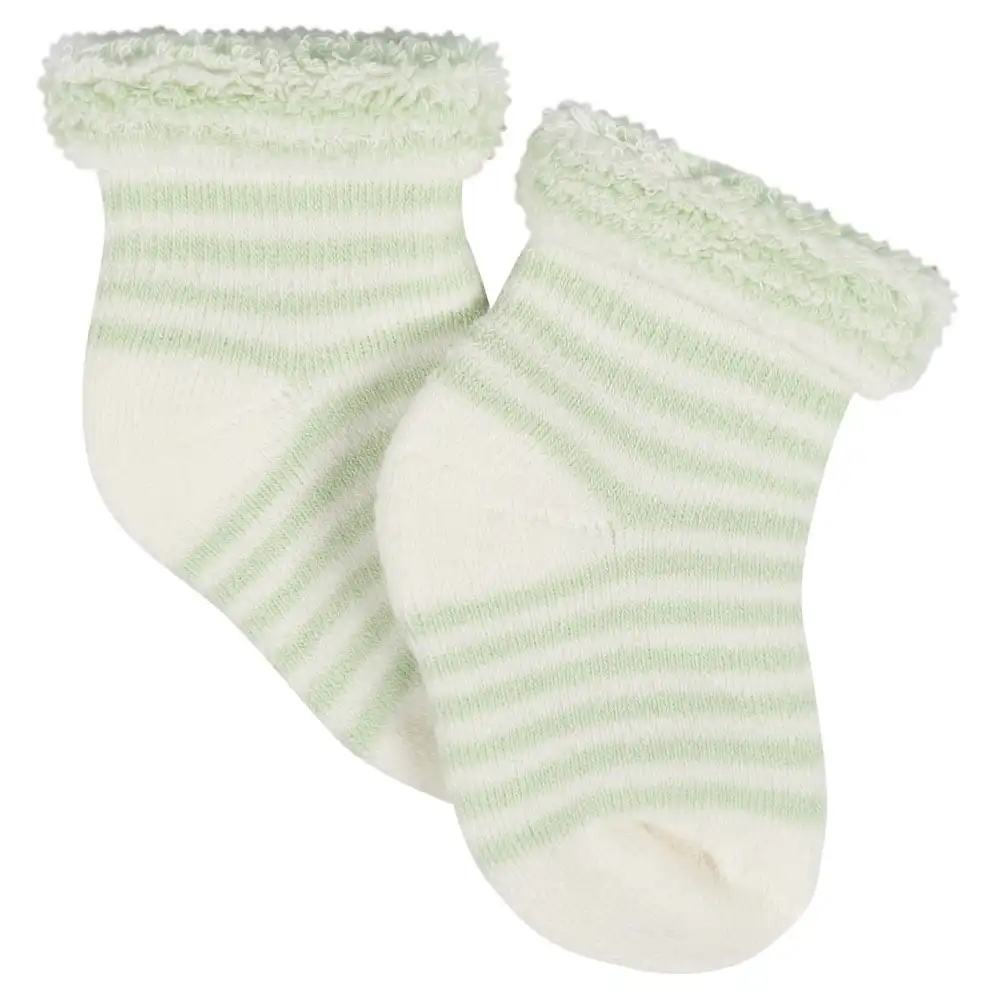 Our Wiggle Proof® socks stay right where they’re meant to, on baby’s feet! Each pair is made with soft, stretchy fabric to cradle those tiny toes in nothing but comfort. We use STANDARD 100 by OEKO-TEX® certification on products tested in an independent laboratory against a list of more than 400 harmful substances, including PFAS. This pack includes 12 pairs of terry bootie socks with veggie themed art.