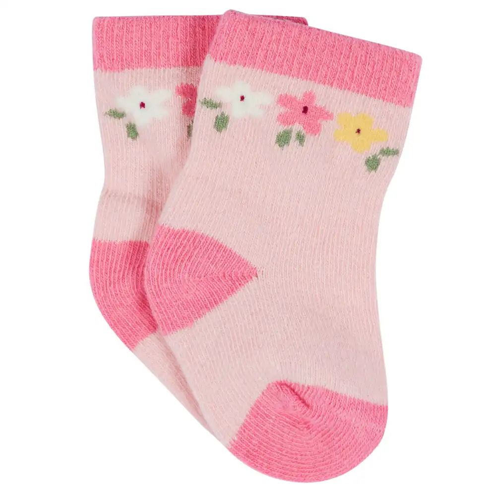 • 12-Pack Baby & Toddler Girls Floral Fox Jersey Crew Wiggle Proof® Socks