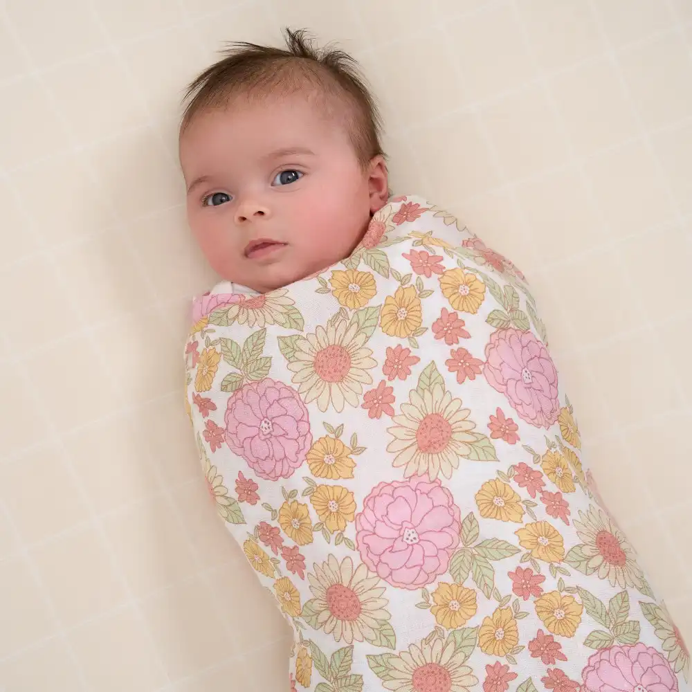 Add a touch of charm to your baby's nursery with our floral pattern and plaid print muslin blanket 2-pack. Crafted from soft, 100% cotton muslin and generously sized at 47" x 47", these blankets are perfect for cuddling, using nursing cover, and swaddling. Keep one in your nursery and one in the diaper bag to ensure you always have one on hand. Our essentials have been independently certified with STANDARD 100 by OEKO-TEX® so that you don’t have to worry about harmful substances. This pack includes two muslin blankets.