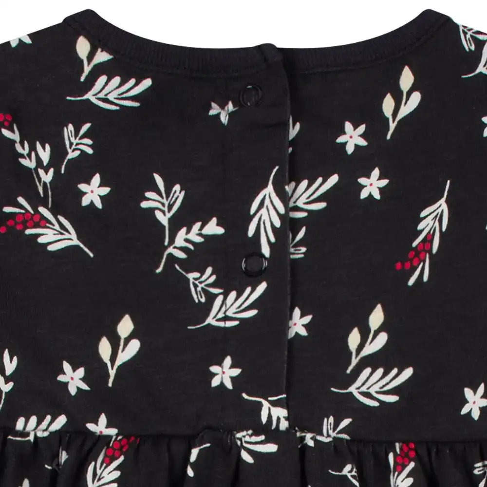 Perfect for adventurous baby girls and toddler girls, this adorable fall or winter outfit is made from comfortable yet durable 100% jersey knit cotton. Rompers feature an adorable hedgehog friend on red and a black romper with white leaves and red berries. Gentle on sensitive skin with an easy pullover design and snaps at the legs for easy diaper changes, this outfit will quickly become everyone's favorite. Our essentials have been independently certified with STANDARD 100 by OEKO-TEX® so that you don’t have to worry about harmful substances in your baby’s wardrobe. This pack includes two rompers.