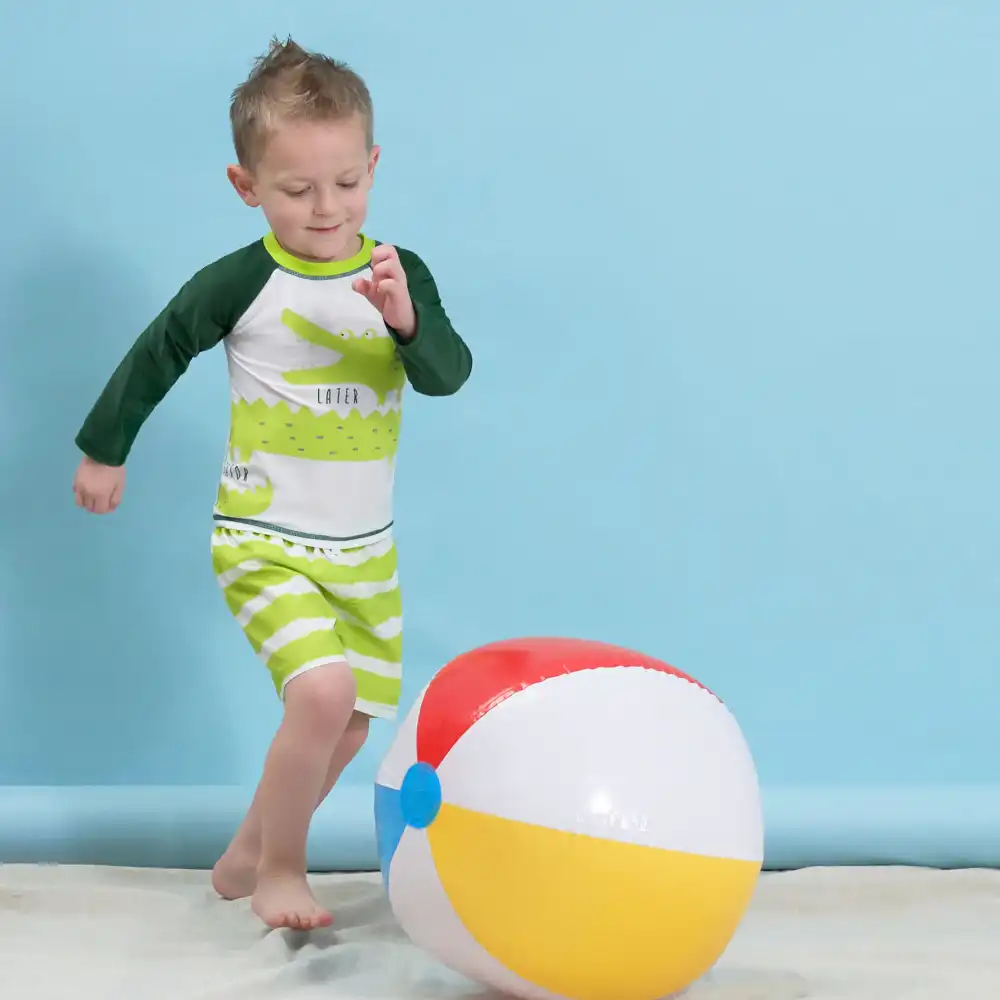 Our baby and toddler swimsuits and rash guards are made with UPF 50+ fabric to prevent your little one from getting sunburnt. They’re cute, comfy, easy-care, and perfect for any swimming adventure!