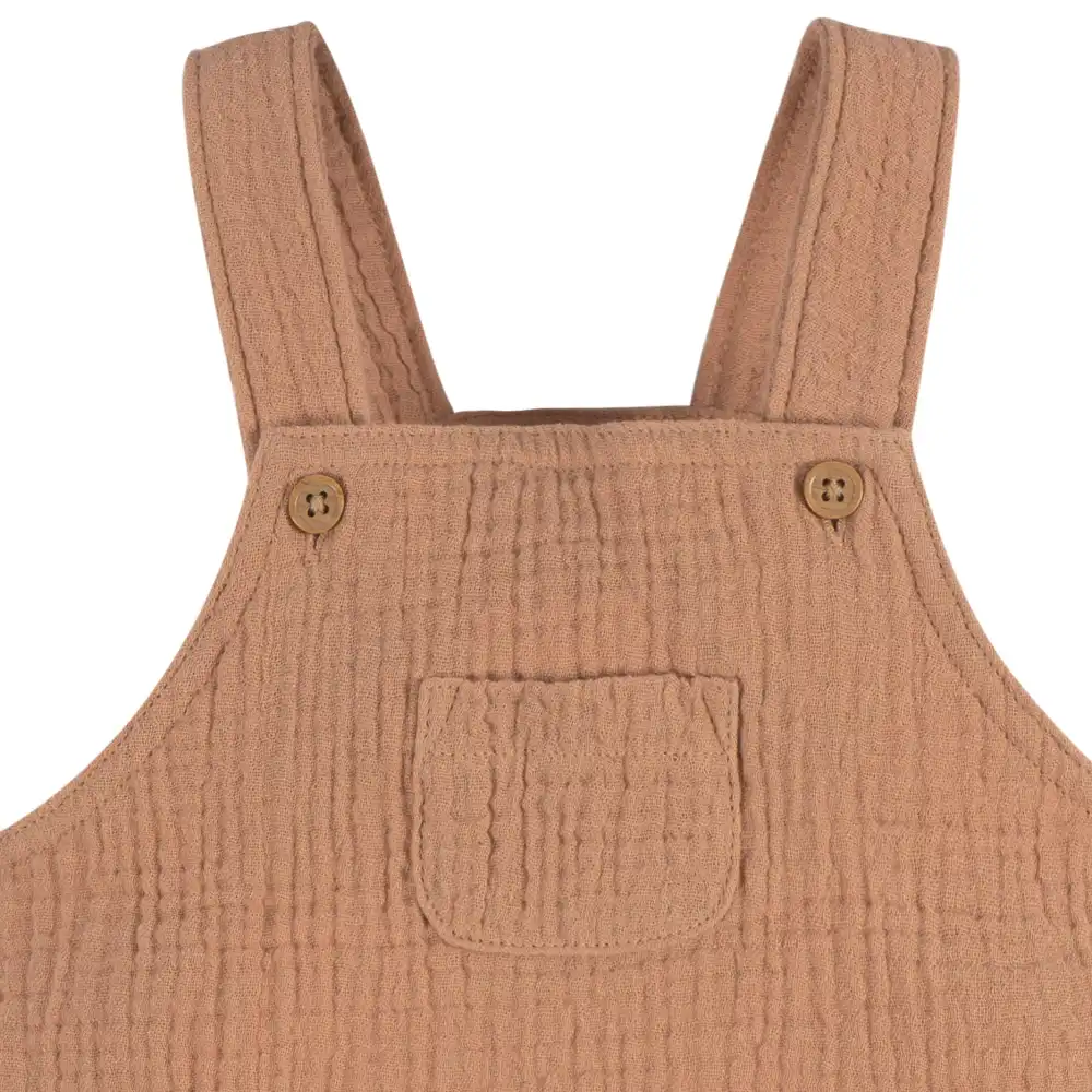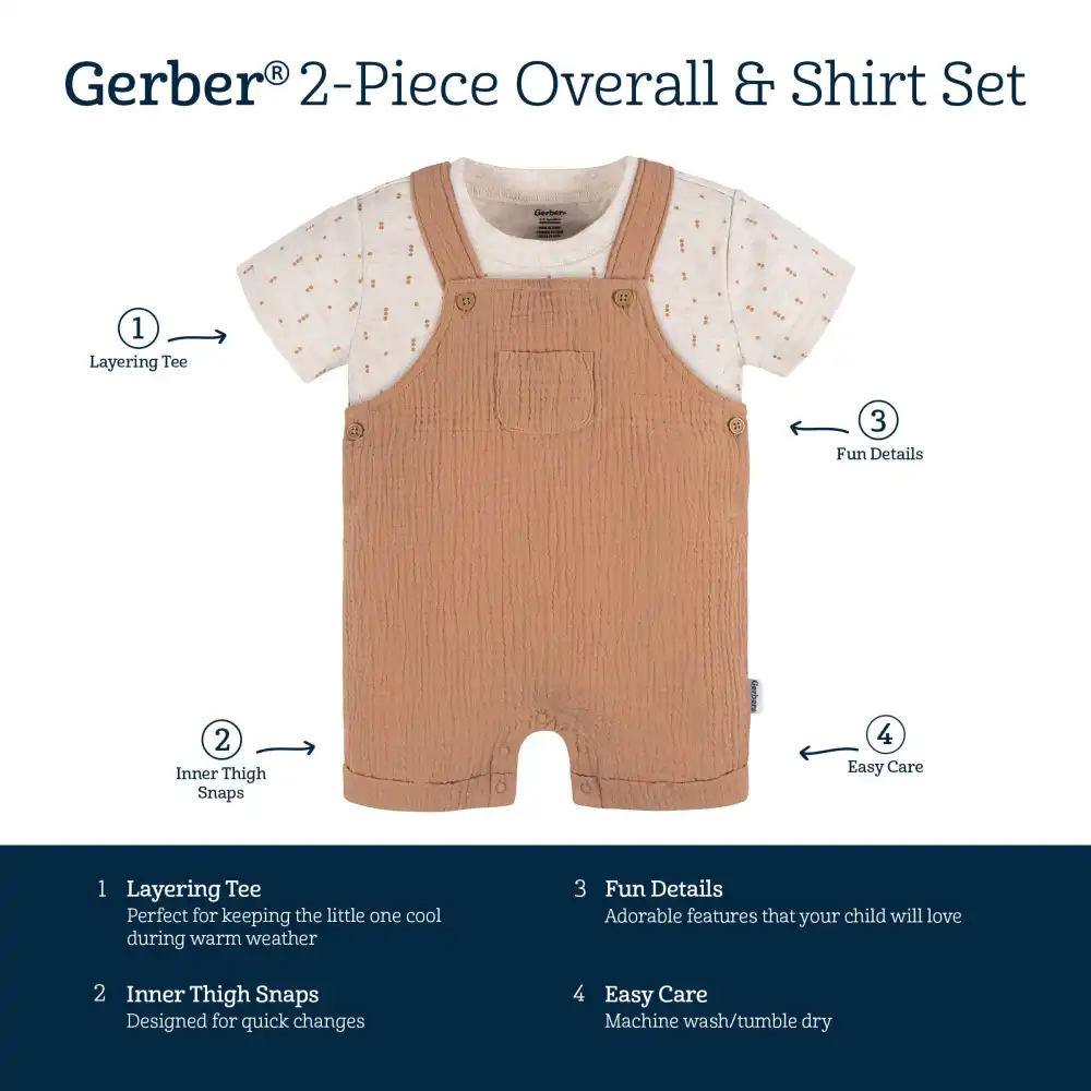 Our adorable gender-neutral baby overall romper set is the perfect outfit for your little one to enjoy sunny, fun-filled days. The romper is made from 100% cotton gauze for a light, breathable fit, keeping your baby boy or baby girl comfortably cool while they play. The t-shirt is crafted primarily from cotton peached jersey for a gentle stretch that moves with your little one, while the soft, ribbed neckline has spandex blended in for extra ease of movement. Perfect for play dates and daily errands, your little one will look adorable and feel great all day in this romper and t-shirt baby outfit. Our essentials have been independently certified with STANDARD 100 by OEKO-TEX® so that you don’t have to worry about harmful substances in your baby’s wardrobe. This pack includes one romper and t-shirt.
