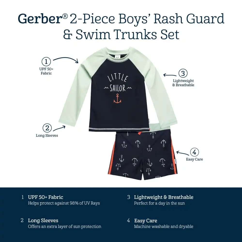 2-Piece Baby & Toddler Boys UPF 50+ Anchors Rash Guard & Swim Trunks Set