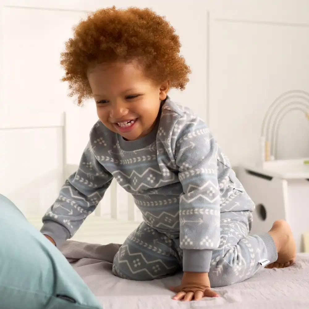 Ultra-comfy microfleece pajamas are the perfect choice for a cozy night’s sleep for your baby or toddler. Ideal for cooler weather, this matching top and bottom set features comfort-stretch material at the neck, wrists, waist, and ankles for easy movement. A cute pattern and decorative twill tape complete the adorable look for your little one to enjoy. Our essentials have been independently certified with STANDARD 100 by OEKO-TEX® so that you don’t have to worry about harmful substances in your baby’s wardrobe. Flame resistant for child safety. Pack includes one matching pajama set.