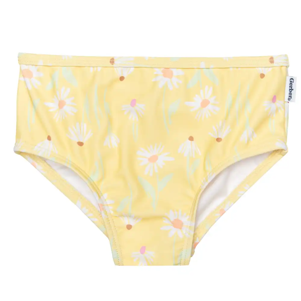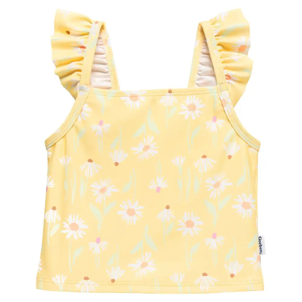 This adorable toddler girl swimsuit is the perfect way to enjoy sunny days at the beach or pool! With a bright, cheerful yellow color and multi-color flowers, she’ll shine in this swimsuit. Made from UPF 50+ material to protect against harmful rays, she can play safely while looking adorable. With shoulder ruffles to add an extra touch of charm, this quick-drying fabric has everything you need for a day of secure, safe, and stylish fun! Our essentials have been independently certified with STANDARD 100 by OEKO-TEX® so that you don’t have to worry about harmful substances in your baby’s wardrobe. Includes a two-piece swimsuit set.