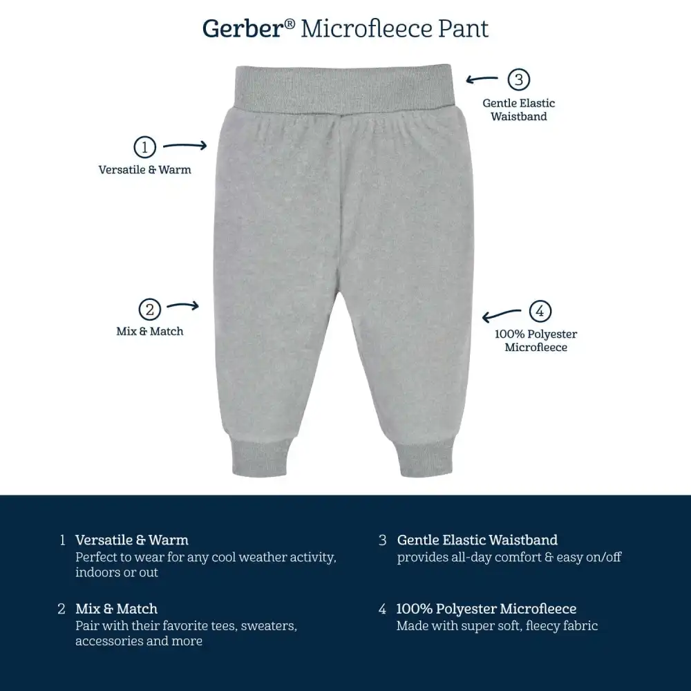 Treat your little one to these incredibly soft and comfy fleece pants – the perfect addition to their wardrobe! Our pants feature a comfort-stretch waistband and cinched ankles, ensuring comfortable, all-day wear. The assortment of colors in this pack enables you to create a wide variety of outfits for your child by mixing and matching tops. Whether it's a day at home, running errands, or a fun playdate, these pants are the perfect choice for almost any occasion, and your child will enjoy wearing them wherever they go. When the day’s adventures are over, simply toss them into the washer and dryer, and they'll be all set for your next adventure! Our essentials have been independently certified with STANDARD 100 by OEKO-TEX® so that you don’t have to worry about harmful substances in your baby’s wardrobe. Includes four pants.