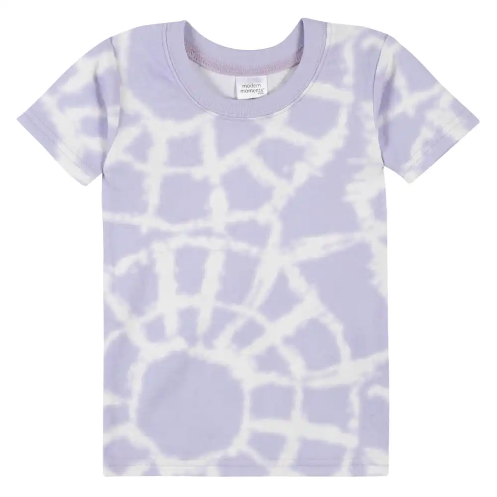 Modern Moments brings modern sophistication to your little one’s wardrobe. Our soft, comfortable pajama sets feature one long sleeve top, one short sleeve top, and two long pajama bottoms. We use STANDARD 100 by OEKO-TEX® certification on products tested in an independent laboratory against a list of more than 400 harmful substances, including PFAS. Designed for safety, our infant and toddler PJ’s feature a snug fit. This 4-piece set of infant and toddler girl pajamas includes one pair solid light purple and one pair ivory and light purple with tie dye print.