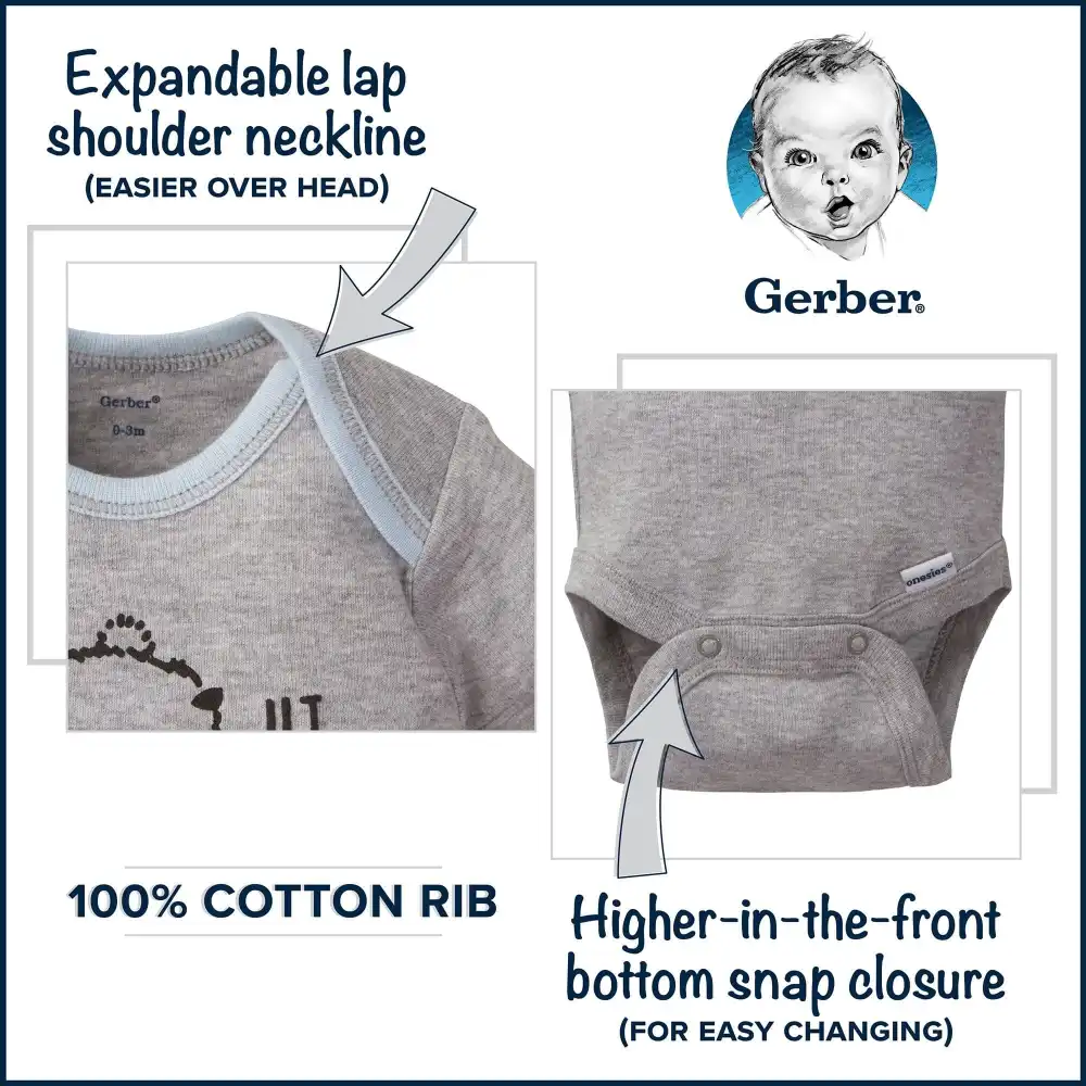 Add a creative twist to any outfit combination with this 6-pack of baby boys' long sleeve Onesies® brand bodysuits! The whimsical designs feature screenprint and puff print. Pair them with their favorite pants to create fun, new outfits. Made from 100% cotton rib, this clothing is designed to keep your little one feeling his best no matter what the day calls for. The higher-in-the-front bottom snap closure keeps diaper changes moving along smoothly. Dressing is easier too with the expandable lap shoulder neckline. Machine wash and dry fabric makes for hassle-free laundry days!
