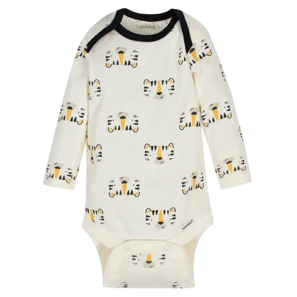 Baby Onesies® Brand bodysuits are stylish and comfortable! These adorable, assorted Onesies® Brand bodysuits are made with a soft cotton fabric thats perfectly comfortable against babys delicate skin. Baby will love how breathable this material is! This pack includes six bodysuits. The precious assortment of colors, patterns, and artwork make these bodysuits a fashionable choice suitable for everyday wear. These classic baby clothes feature lap shoulder necklines that make wardrobe changes easier than ever. The necklines allow the garment to slip over babys head in total comfort. They also feature bottom snap enclosures that are conveniently positioned higher in front to quicken diaper changes. Adorable and affordable, these bodysuits truly are high-quality. Onesies® Brand bodysuits are perfect for any little one with style.