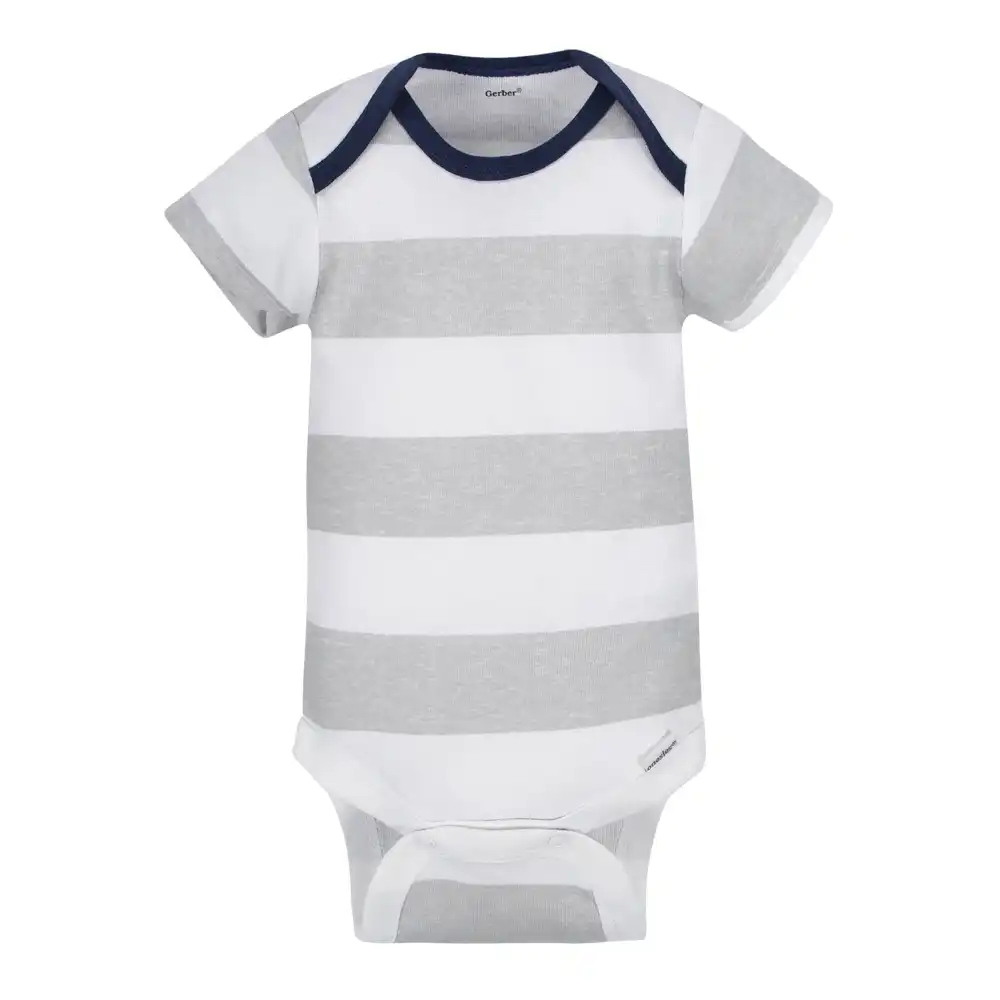 This 8-pack of baby boys' short sleeve Onesies brand bodysuits will have mom and baby smiling! Themed designs in screenprint and puff print create unique pieces that are lots of fun for little ones to wear. They pair perfectly with other wardrobe favorites, making dressing simple. 100% cotton rib provides a cool, breathable feel. The higher-in-the-front bottom snap closure makes diapering more streamlined. The bodysuits are easier to pull on with the expandable lap shoulder neckline. Machine wash and dry fabric ensures stress-free laundry days!