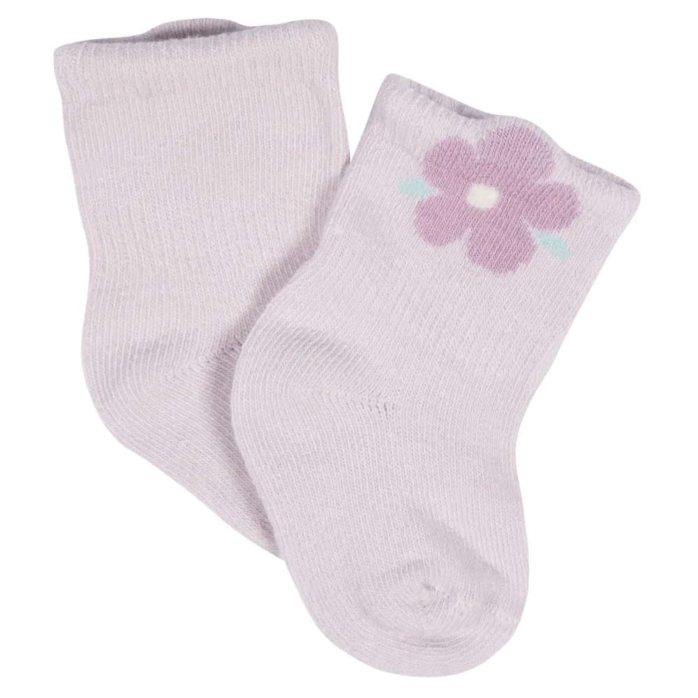 Our Wiggle Proof® socks stay right where they’re meant to, on baby’s feet! Each pair is made with soft, stretchy fabric to cradle those tiny toes in nothing but comfort. We use STANDARD 100 by OEKO-TEX® certification on products tested in an independent laboratory against a list of more than 400 harmful substances, including PFAS. This pack includes eight pairs of jersey crew socks with floral themed art.