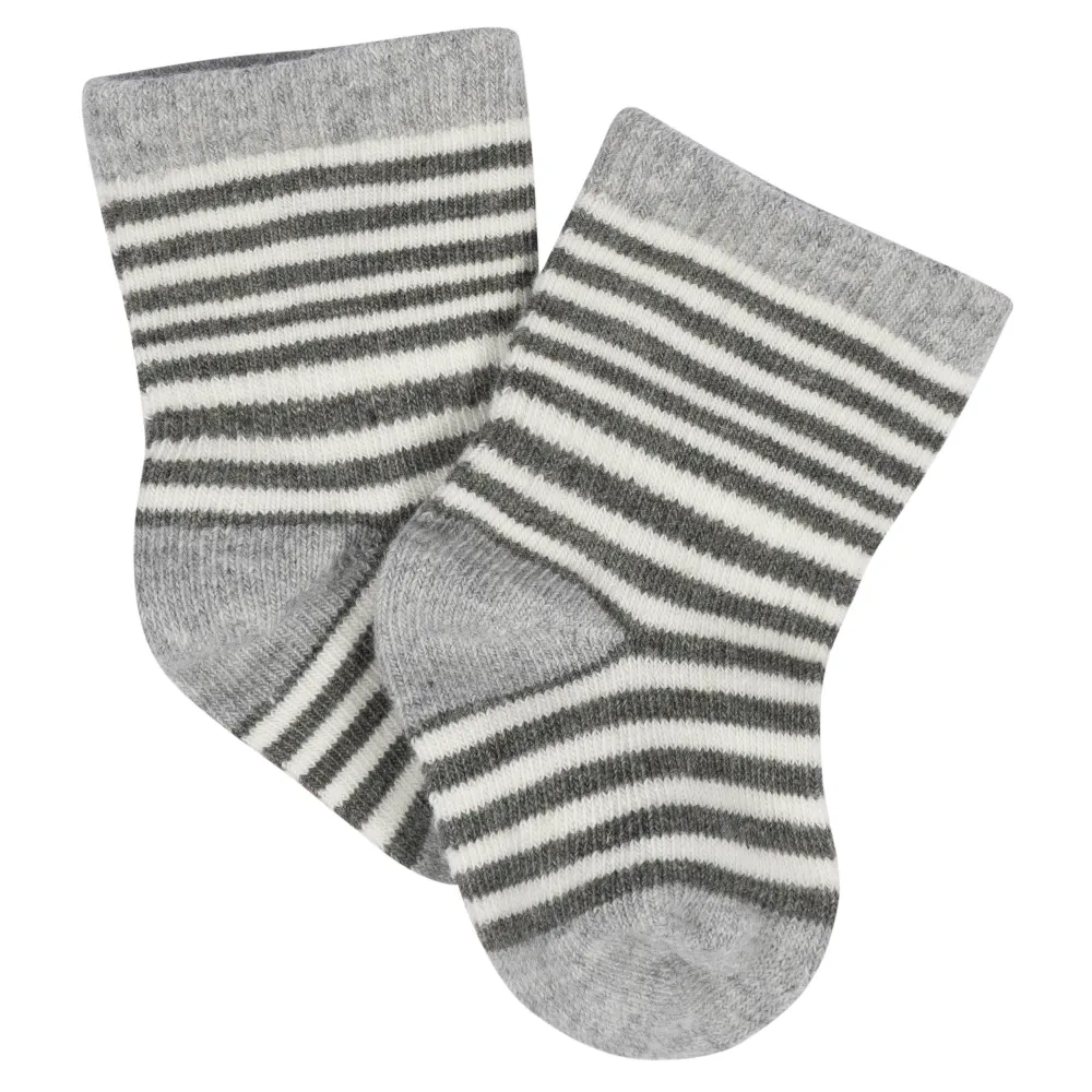 Our Wiggle Proof® socks stay right where they’re meant to, on baby’s feet! Each pair is made with soft, stretchy fabric to cradle those tiny toes in nothing but comfort. We use STANDARD 100 by OEKO-TEX® certification on products tested in an independent laboratory against a list of more than 400 harmful substances, including PFAS. This pack includes eight pairs of jersey crew socks with southwest themed art.