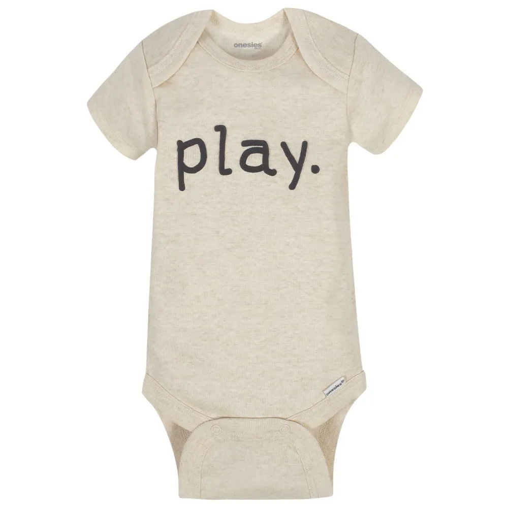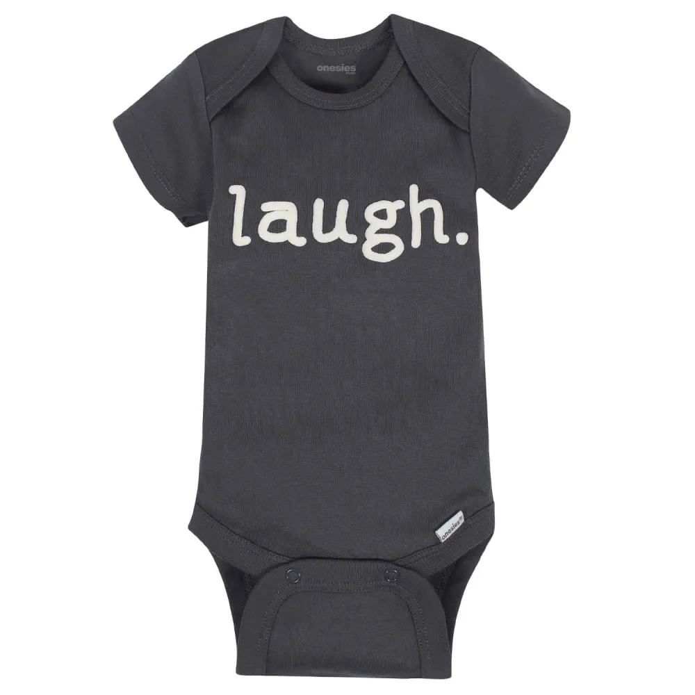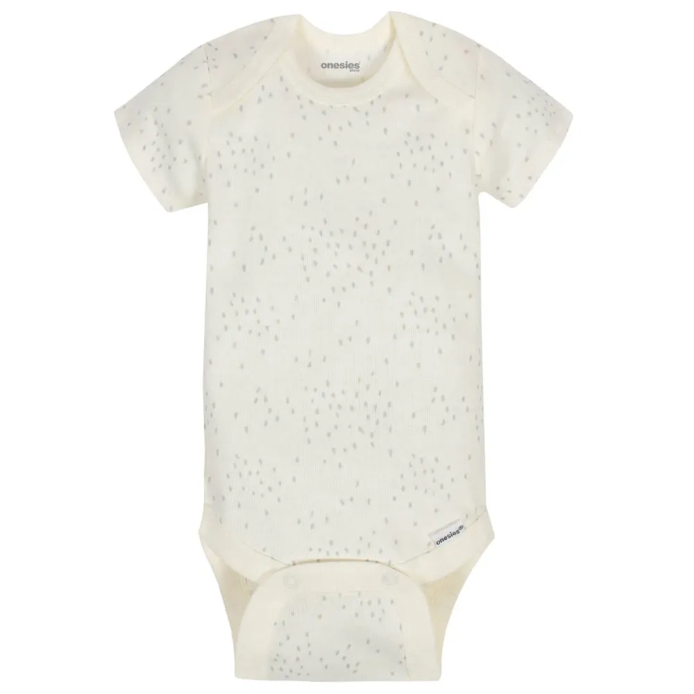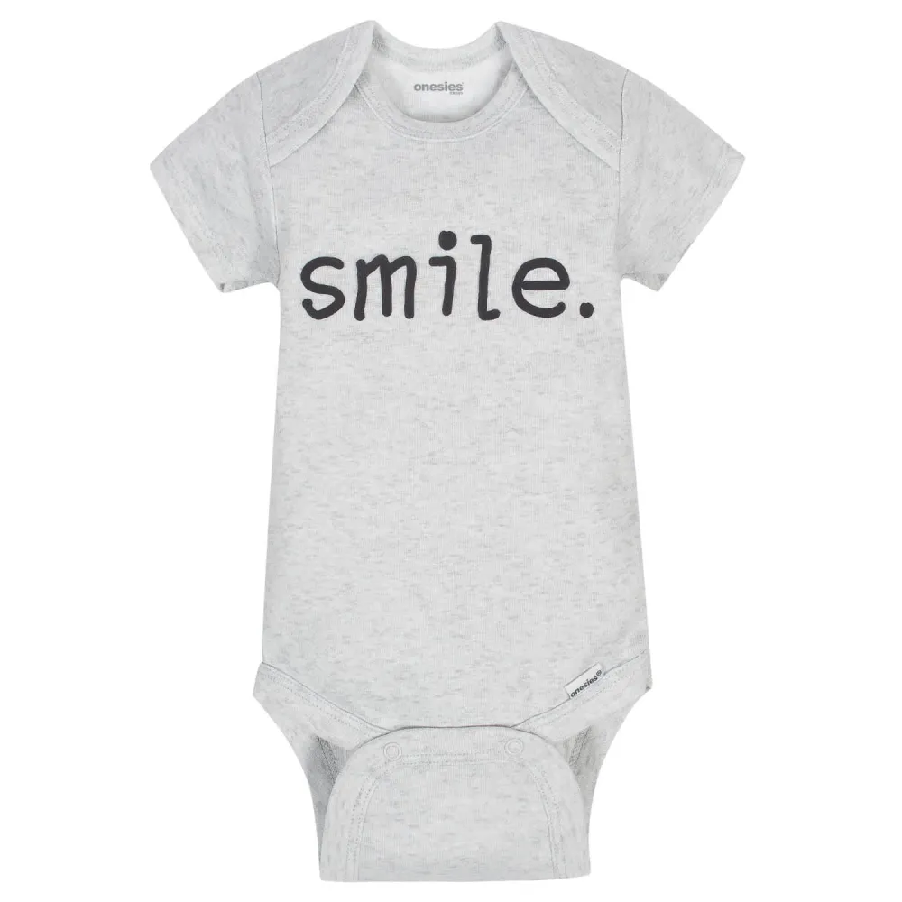 Baby Onesies® bodysuits are stylish and comfortable! These adorable, asorted Onesies® bodysuits are made with a soft cotton fabric thats perfectly comfortable against babys delicate skin. Baby will love how breathable this material is! This pack includes eight bodysuits. Pair them with baby pants, baby shorts, or cute baby socks to create fun and comfortable outfits your baby boy is sure to love! These classic baby clothes feature lap shoulder necklines that make wardrobe changes easier than ever. The necklines allow the garment to slip over babys head in total comfort. They also feature bottom snap enclosures that are conveniently positioned higher in front to quicken diaper changes. Adorable and affordable, these bodysuits truly are high-quality. Onesies® bodysuits are perfect for any little one with style.