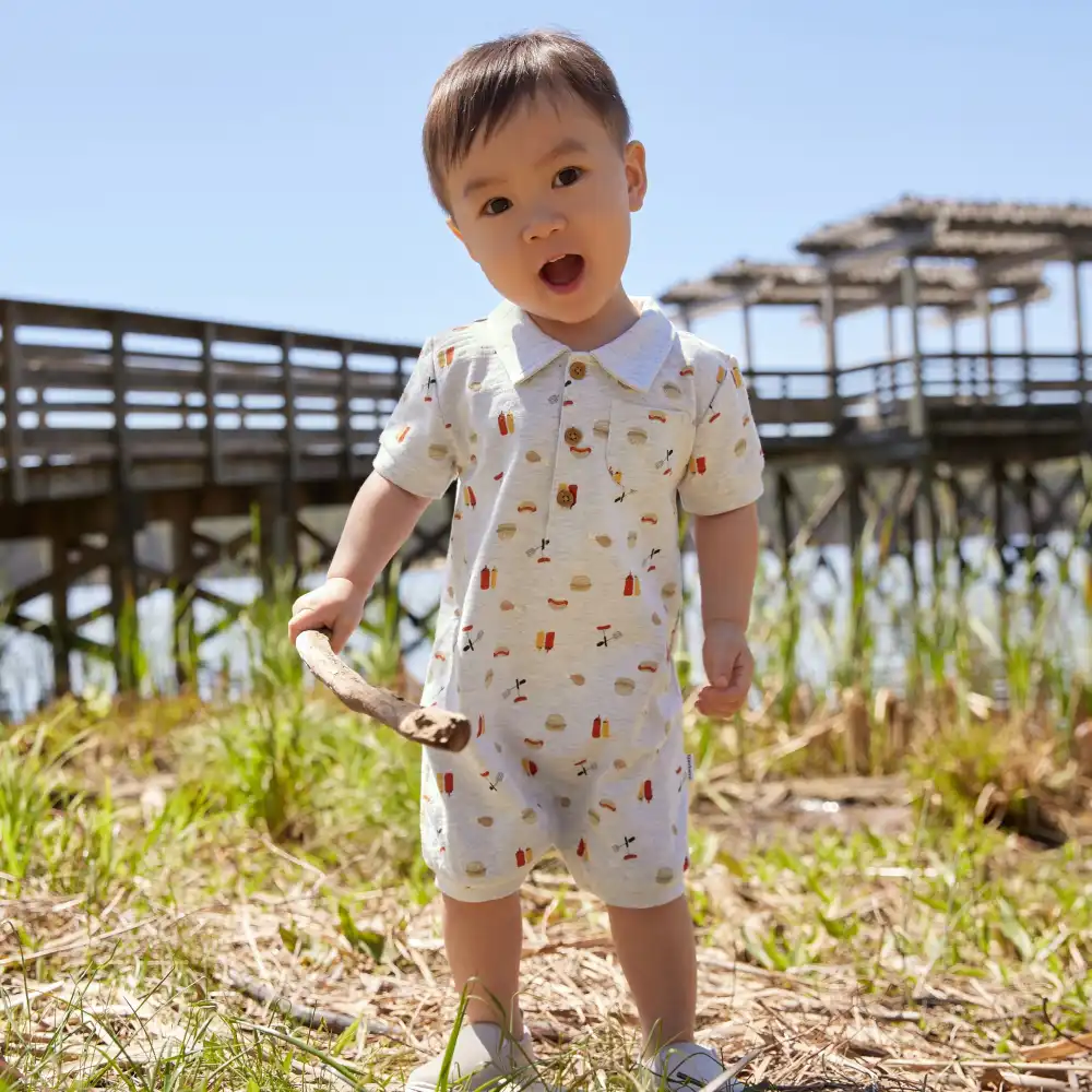With our baby boy short sleeve romper, your little one will be prepared for sunny days and endless playtime. Crafted from 100% cotton slub French terry, this romper is ideal for keeping your baby cool and comfortable in warm weather. The short sleeves and breathable, stretchy material let your little one move freely in comfort. When it's time for a diaper change or getting dressed, the leg snaps make the process quick and hassle-free. And with convenient machine washing, it’s simple to keep this baby boy romper clean so he can wear it all season long. Our essentials have been independently certified with STANDARD 100 by OEKO-TEX® so that you don’t have to worry about harmful substances in your baby’s wardrobe. Includes one romper.