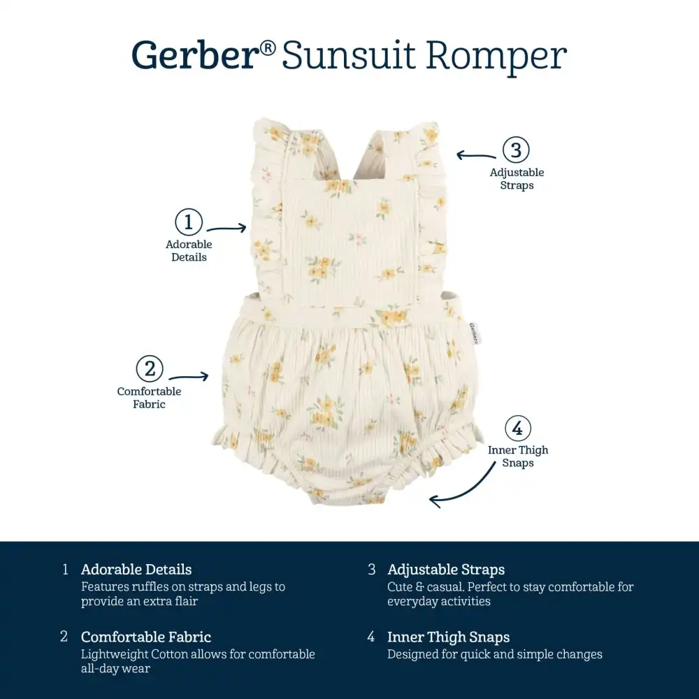 Brighten up your baby girl's closet with this delightful romper! Crafted from cotton infused with spandex for a comfortable stretch, this romper offers a soft feel for all-day wear. With convenient leg snaps, dressing your baby and handling diaper changes are fast and easy, while the sleeveless design is perfect for sunny days. The charming floral print will have your little one looking irresistibly cute, and with easy machine cleaning, you can have it clean and ready for her next adventure! Prepare for the warm weather with this adorable baby girl romper. Our essentials have been independently certified with STANDARD 100 by OEKO-TEX® so that you don’t have to worry about harmful substances in your baby’s wardrobe. Includes one romper.