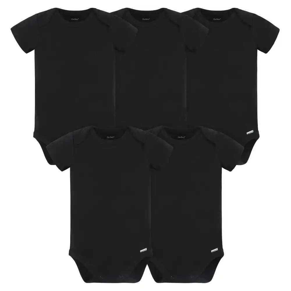 5-Pack Baby Black Premium Short Sleeve Onesies® Bodysuits