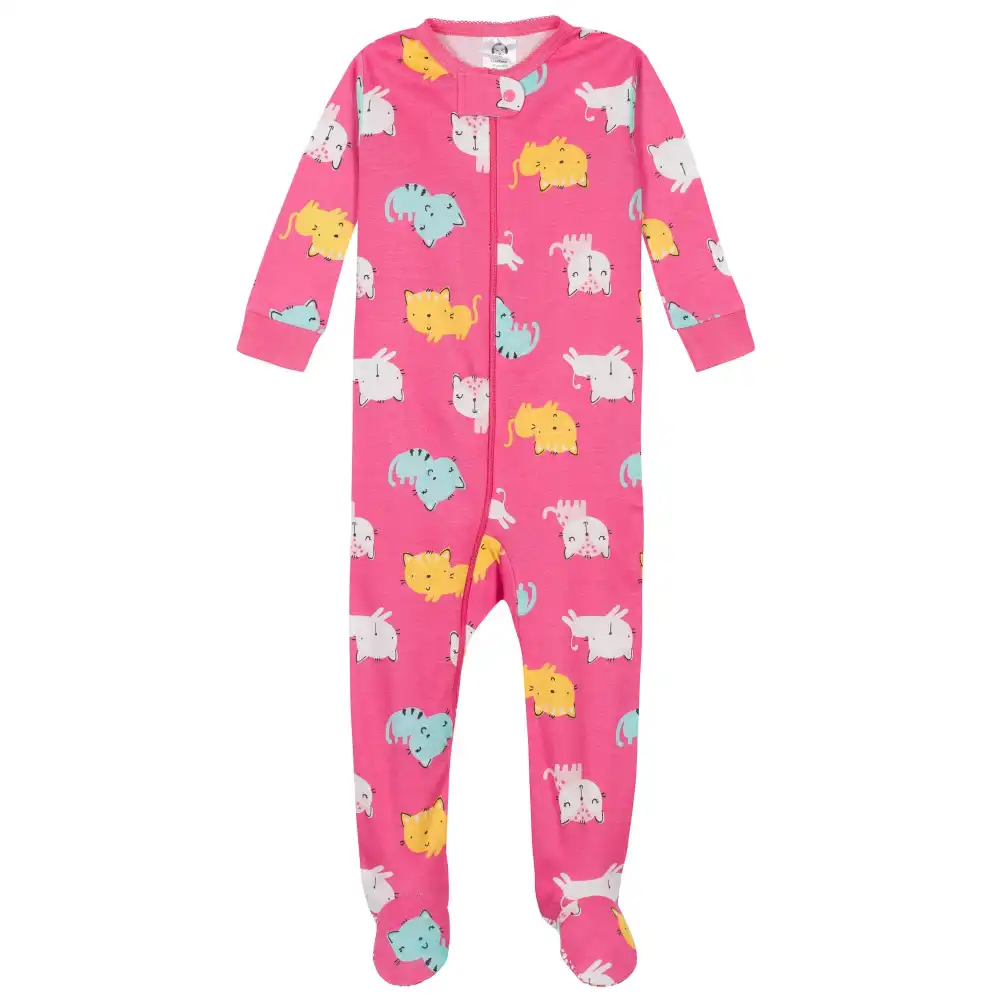 2-Pack Baby & Toddler Girls Cats Snug Fit Footed Cotton Pajamas