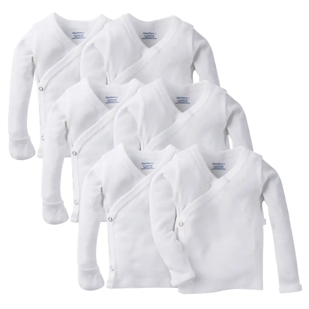 6-Pack Baby White Long-Sleeve Side-Snap Mitten-Cuff Shirts