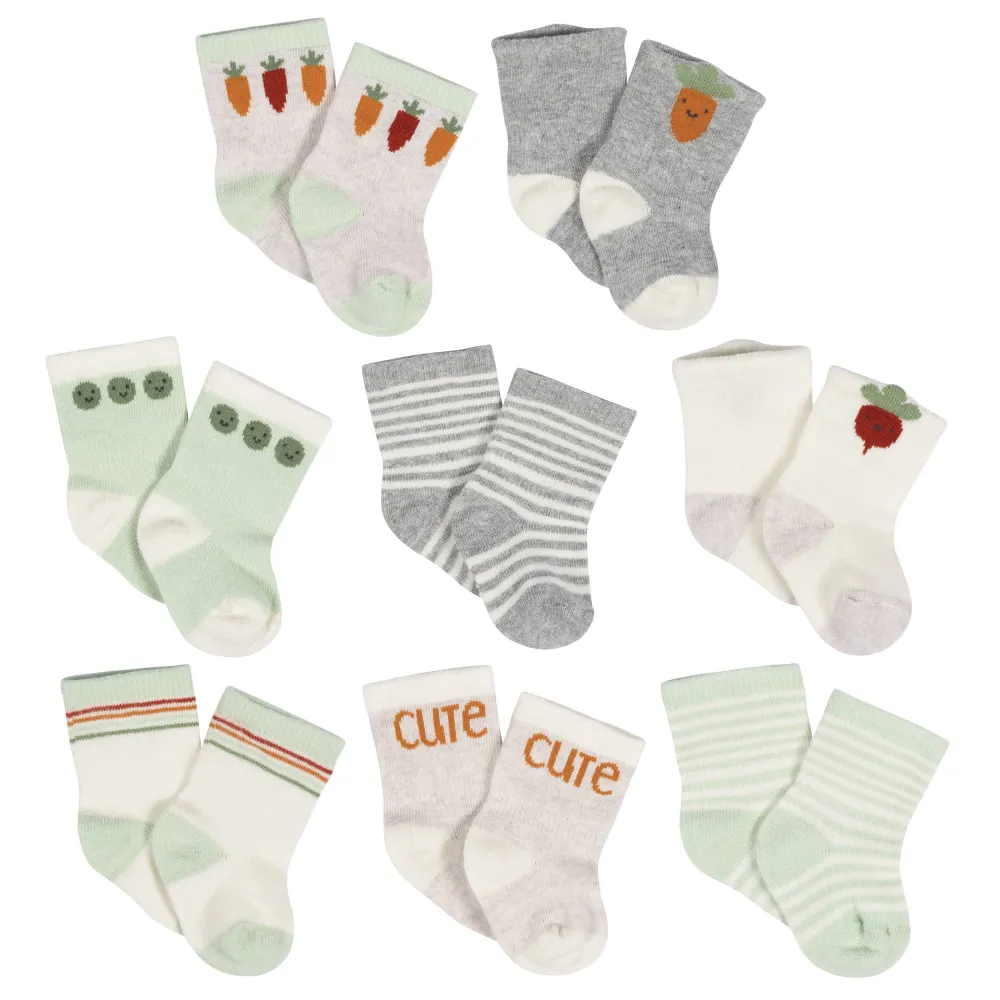 8-Pack Baby Neutral Happy Veggies Jersey Wiggle Proof® Socks