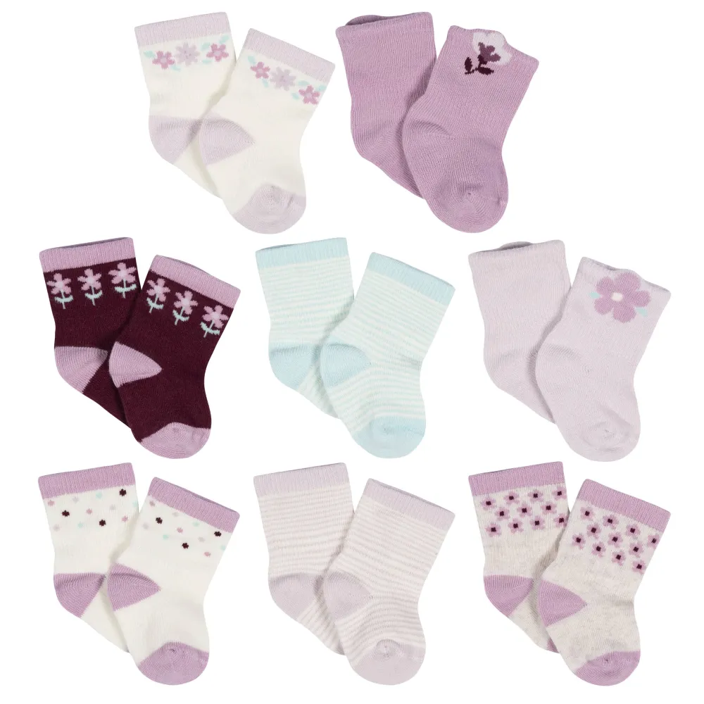 8-Pack Baby Girls Lavender Garden Jersey Wiggle Proof® Socks