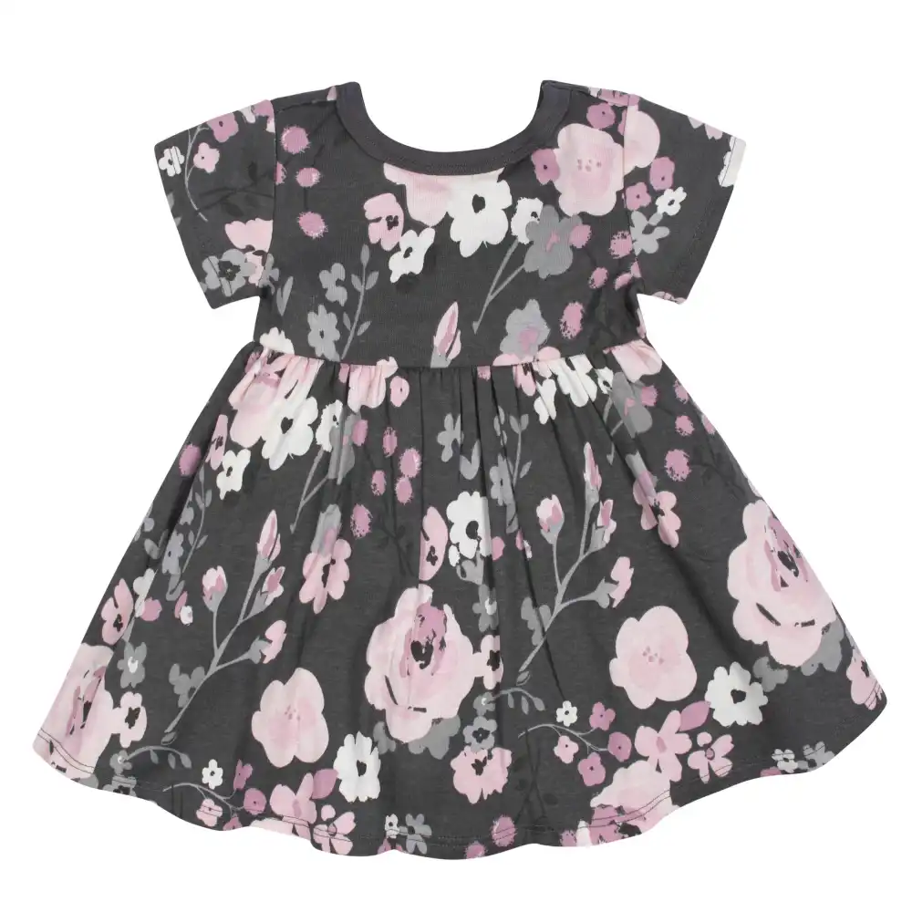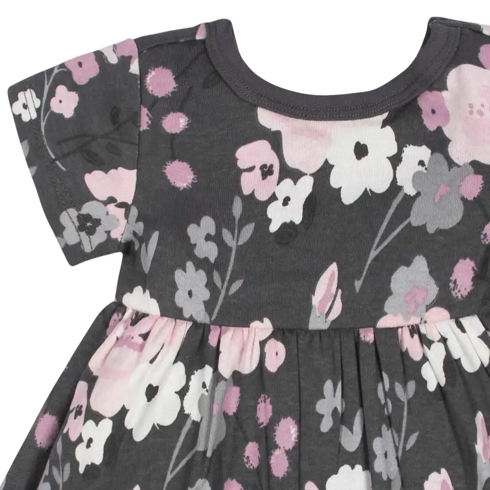 2-Pack Baby Girls Gray Floral Short Sleeve Dresses