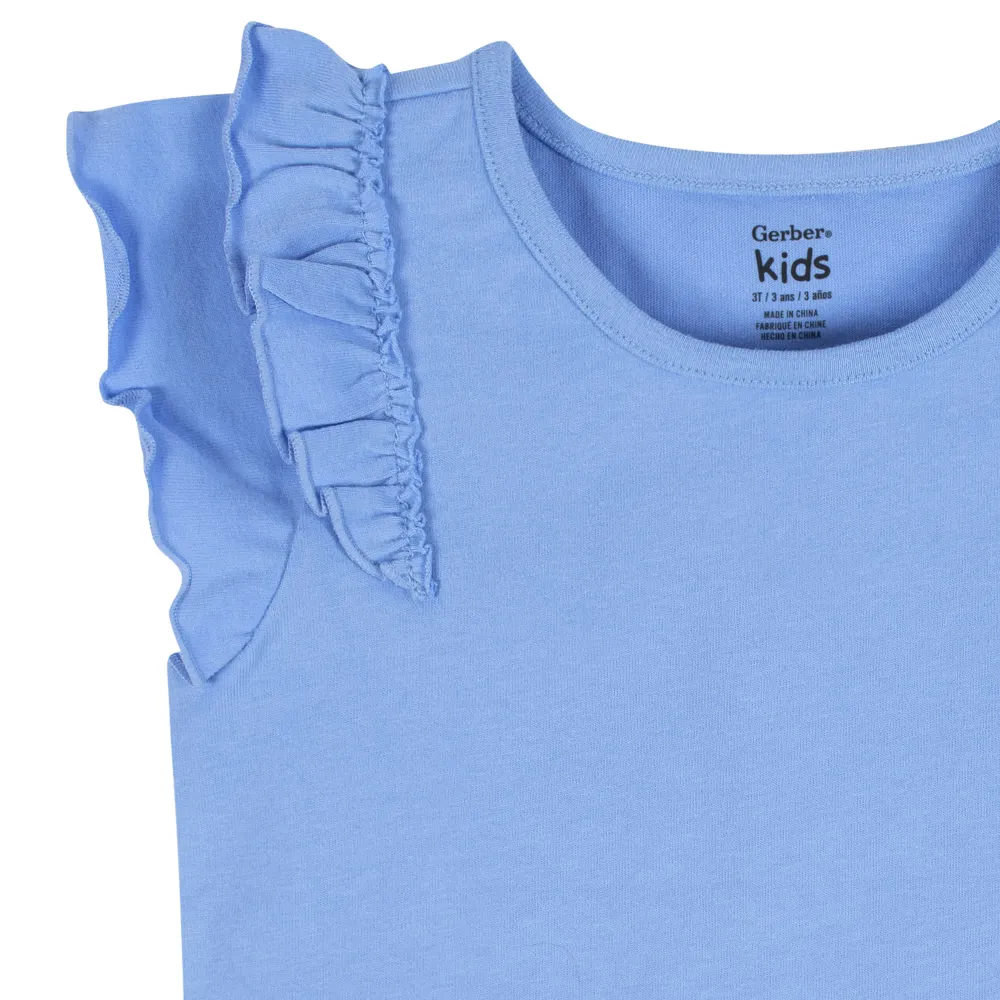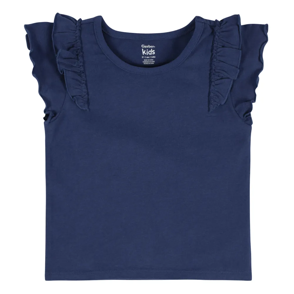 Our 2-pack short sleeve double ruffle tops are the perfect spring and summer staple! Each top is designed for easy dressing and all-day comfort, perfect for infants and toddlers. We use STANDARD 100 by OEKO-TEX® certification on products tested in an independent laboratory against a list of more than 400 harmful substances, including PFAS. Pair these shades of blue tops with our coordinating printed or solid leggings and shorts for all day play!