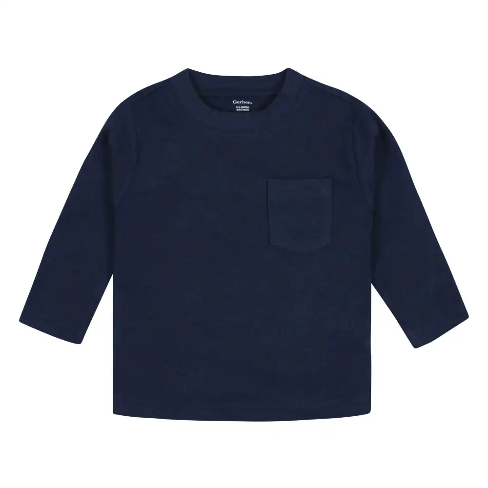 3-Pack Baby Boys Royal Blues Long Sleeve Pocket Tees, 0-3M