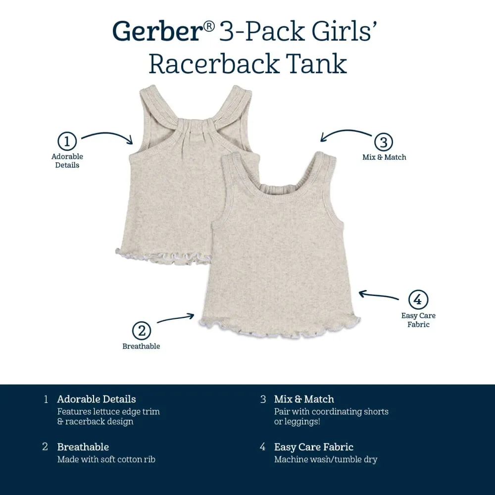 3-Pack Baby Girls Sweet Florals Racer Back Tank Tops