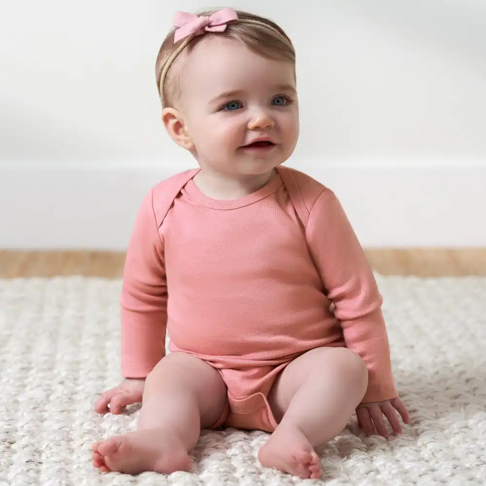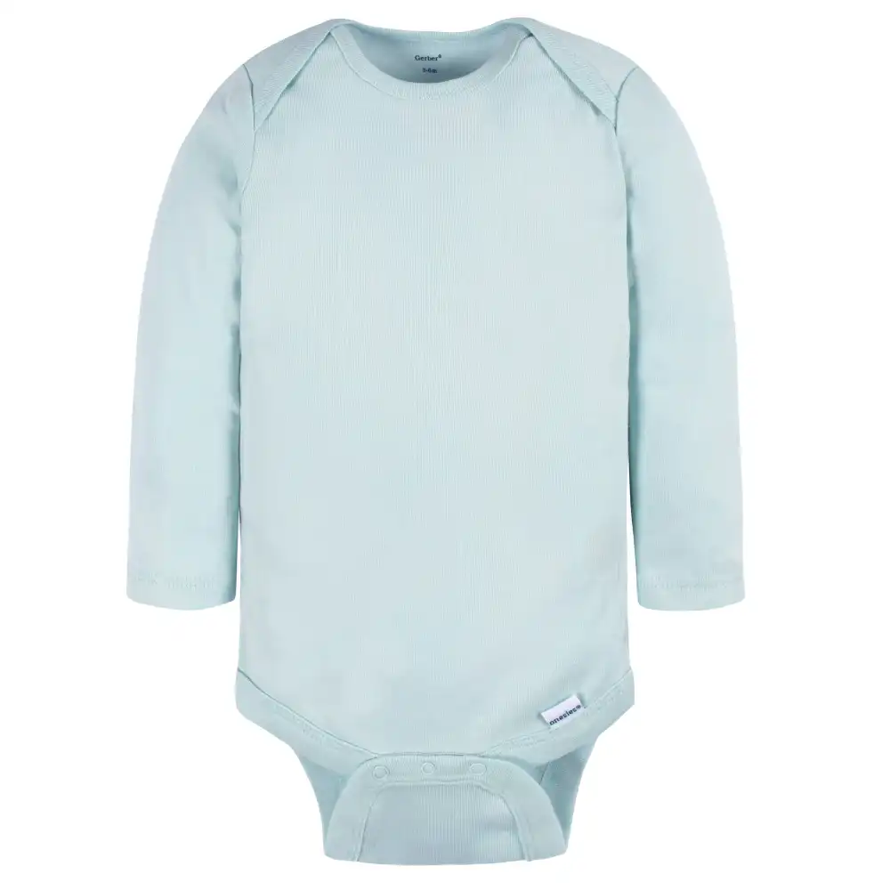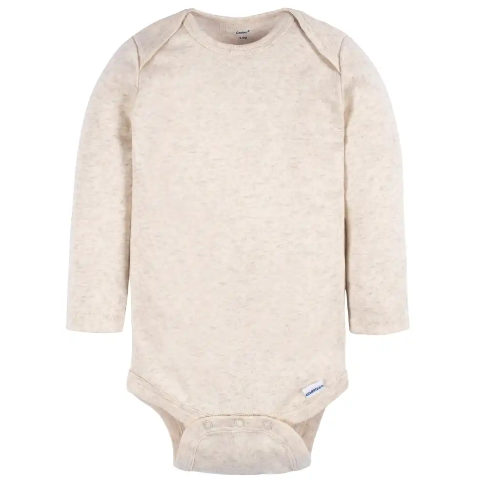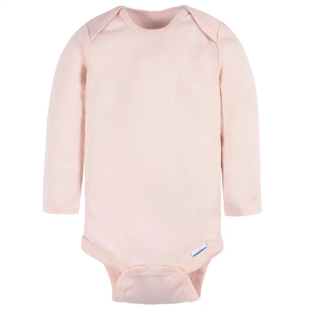 These long sleeve Onesies® Bodysuits are your essential baby girl outfit. Easy to wear as a one-piece outfit in warmer months and simple to layer on cooler days. Crafted from 100% cotton to be gentle on sensitive skin, these outfits are easy to slip on either as a pullup or pullover. High-positioned snaps make it easy to change a diaper without removing the entire outfit. If an outfit change is needed, the expandable lap shoulder neckline makes it easy to pull the dirty outfit down over the legs. We use STANDARD 100 by OEKO-TEX® certification on products tested in an independent laboratory against a list of more than 400 harmful substances, including PFAS. This pack includes four long sleeve Onesies® bodysuits.