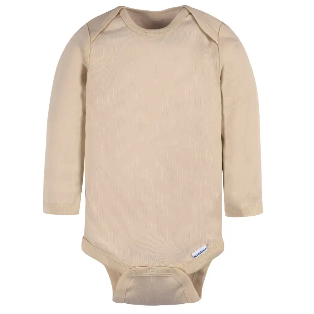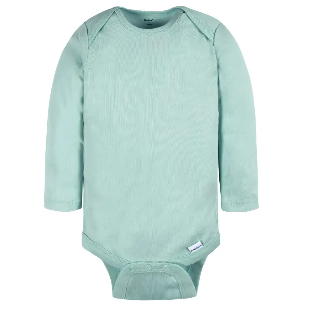 These long sleeve Onesies® Bodysuits are your essential baby boy outfit. Easy to wear as a one-piece outfit in warmer months and simple to layer on cooler days. Crafted from 100% cotton to be gentle on sensitive skin, these outfits are easy to slip on either as a pullup or pullover. High-positioned snaps make it easy to change a diaper without removing the entire outfit. If an outfit change is needed, the expandable lap shoulder neckline makes it easy to pull the dirty outfit down over the legs. We use STANDARD 100 by OEKO-TEX® certification on products tested in an independent laboratory against a list of more than 400 harmful substances, including PFAS. This pack includes four long sleeve Onesies® bodysuits.