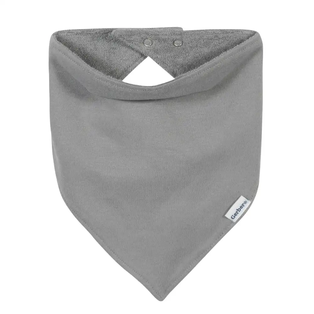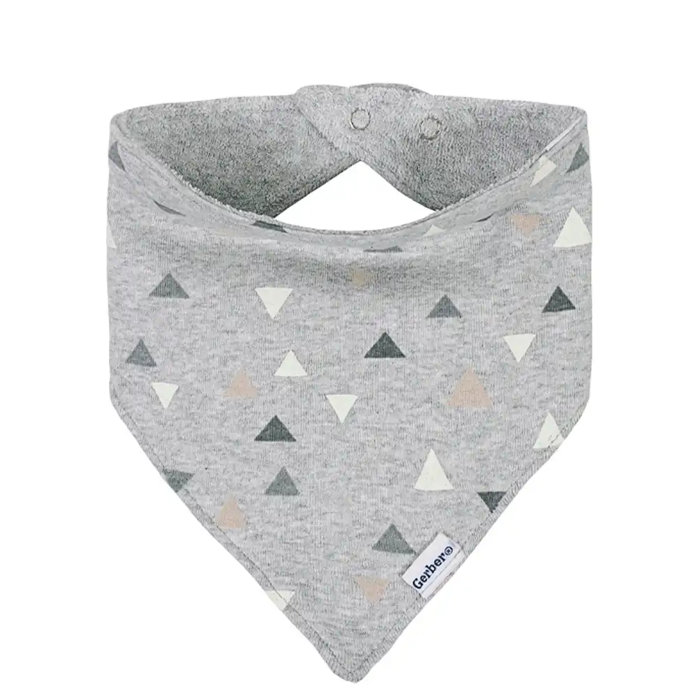 Modern Moments by Gerber®. Modern sophistication made with the quality and value you expect from us. Add a modern flair to your baby’s wardrobe with our stylish and practical caps and bibs set. The bandana bibs are soft and comfortable to wipe baby’s face and feature a snap fastener. The knotted caps feature a soft cuff and are perfect to mix and match with the bibs. We had this set independently certified with STANDARD 100 by OEKO-TEX® so that you don’t have to worry about harmful substances in your baby’s clothing. The soft fabric is made with cotton with organic fibers to make for a healthy planet and happy baby. This set’s simple style will add something special to any of baby’s outfits. It includes two solid gray and triangle print bibs and caps. This four-piece set is machine washable and dryable and is made with 97% cotton with organic fibers and 3% spandex.