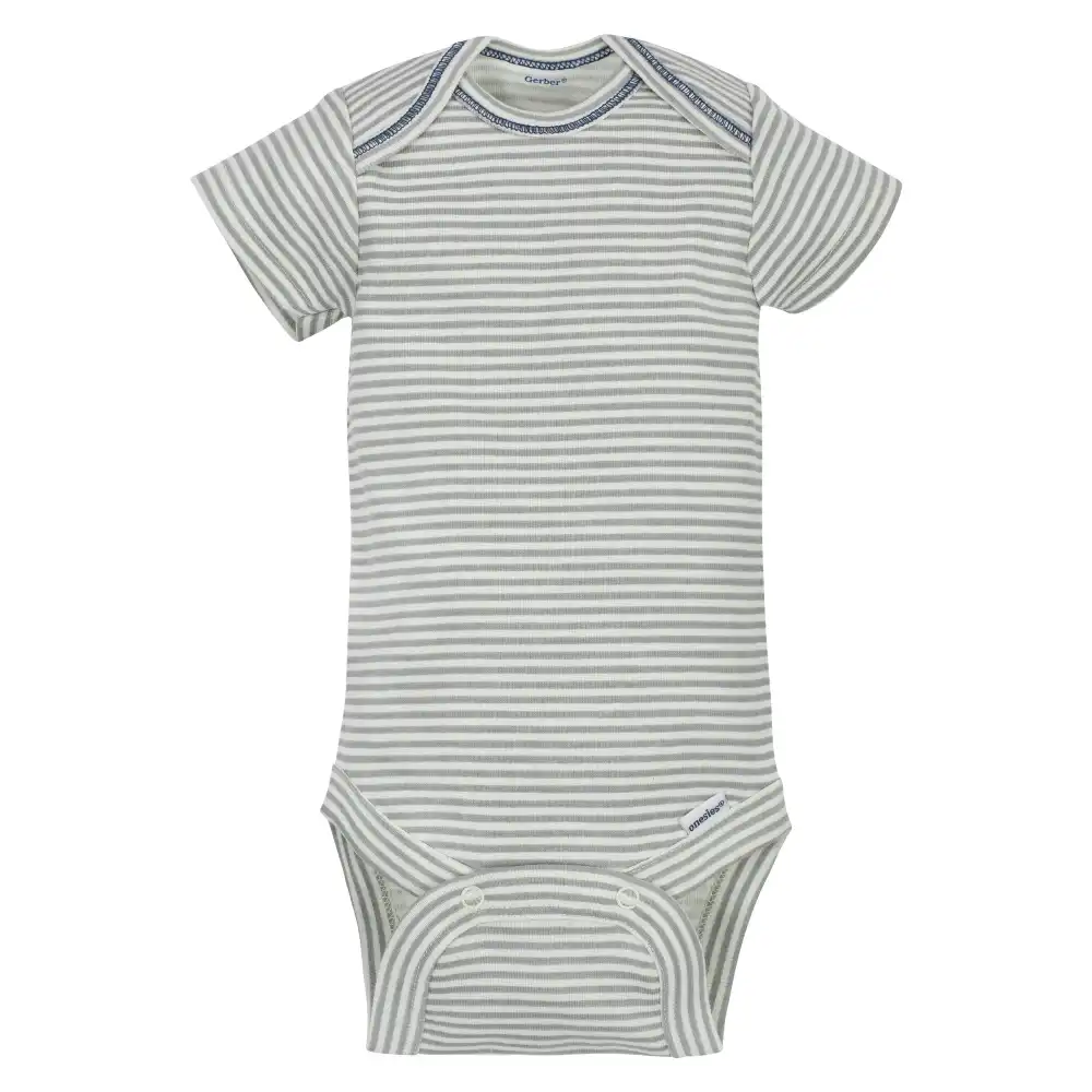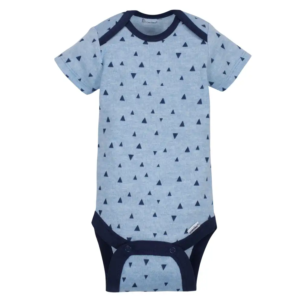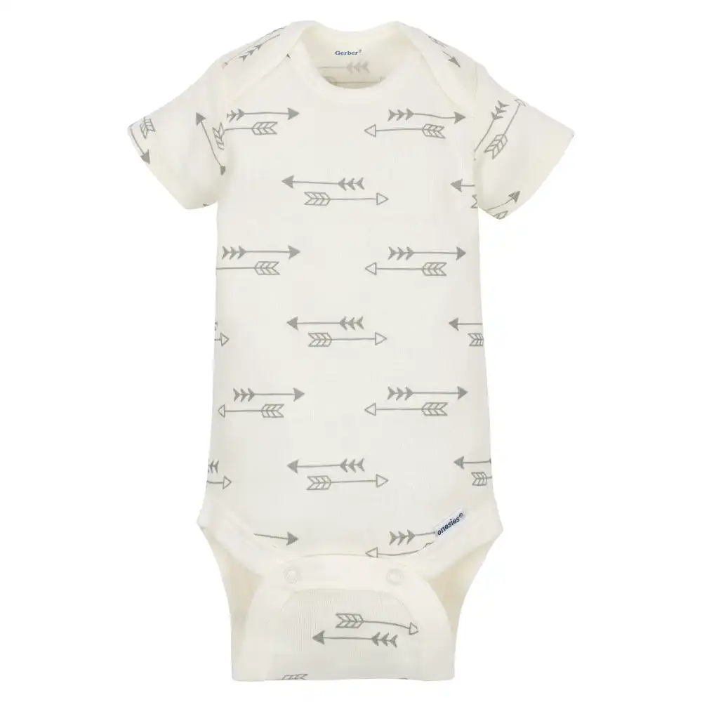 This 5-pack of boys' Gerber Onesies® brand short sleeve bodysuits provides moms with variety for dressing their little boy. These bodysuits are made from 100% cotton rib. The fabric is designed to feel soft on delicate baby skin. It keeps little ones cool and comfortable by breathing easily, even during the most vigorous activities. Design details are whimsical and fun, with hedgehog themed flocking and screen-print. The bodysuits pair seamlessly with other pieces from this collection for a perfectly-matched outfit. The classic colors also make mixing and matching easy for moms who enjoy getting creative with other wardrobe favorites. Convenient features like an expandable lap shoulder neckline make dressing easier for busy moms. Diaper changes go by quickly with the higher-in-the-front bottom snap closure that makes access simpler. When the day's done, just toss these items into the washer and dryer for quick and simple cleaning!