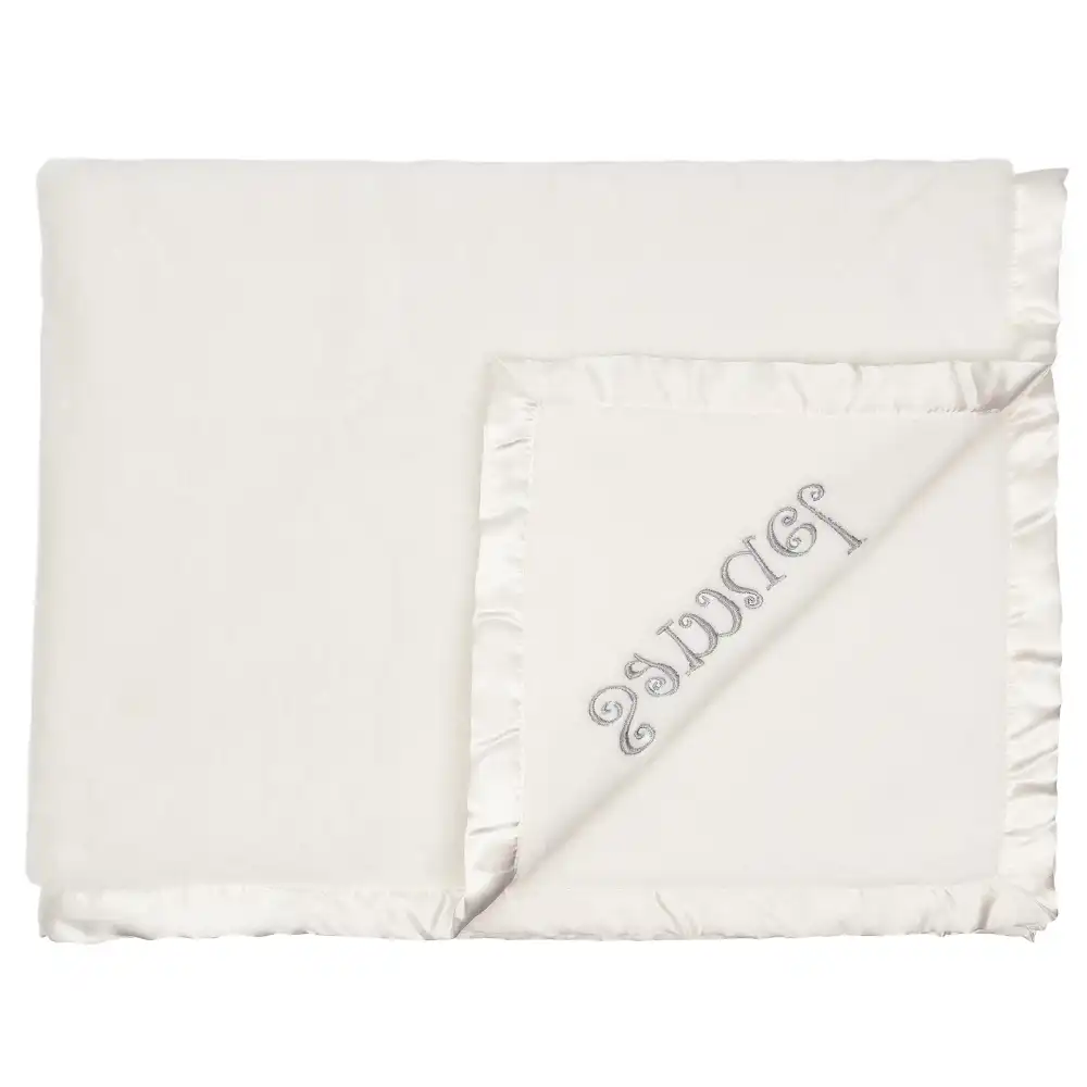 Add your own special touch with our customized embroidery services! Sized at 30” x 30”, our plush blankets make a beautiful and practical accent piece in the nursey or may be folded up with ease for on-the-go use. Give this baby blanket as a thoughtful baby shower gift or gift one to your own child to love. Our baby boy blankets, baby girl blankets, and baby neutral blankets are made with easy-care materials that may be machine washed and dried. This pack includes one ivory baby blanket.