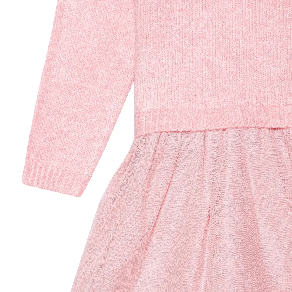 Infant Girls Pink Sweater Dress With Tulle Skirt, 12M