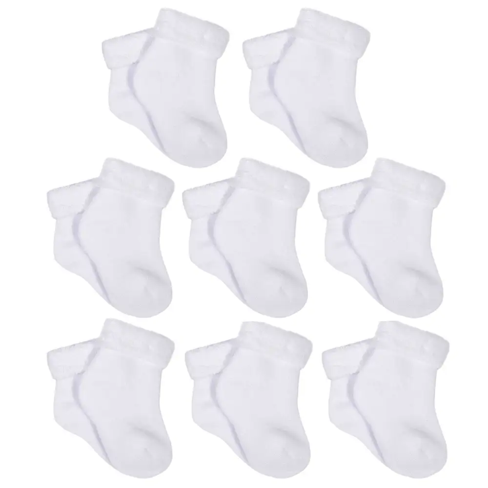8-Pack White Organic Wiggle Proof® Bootie Socks