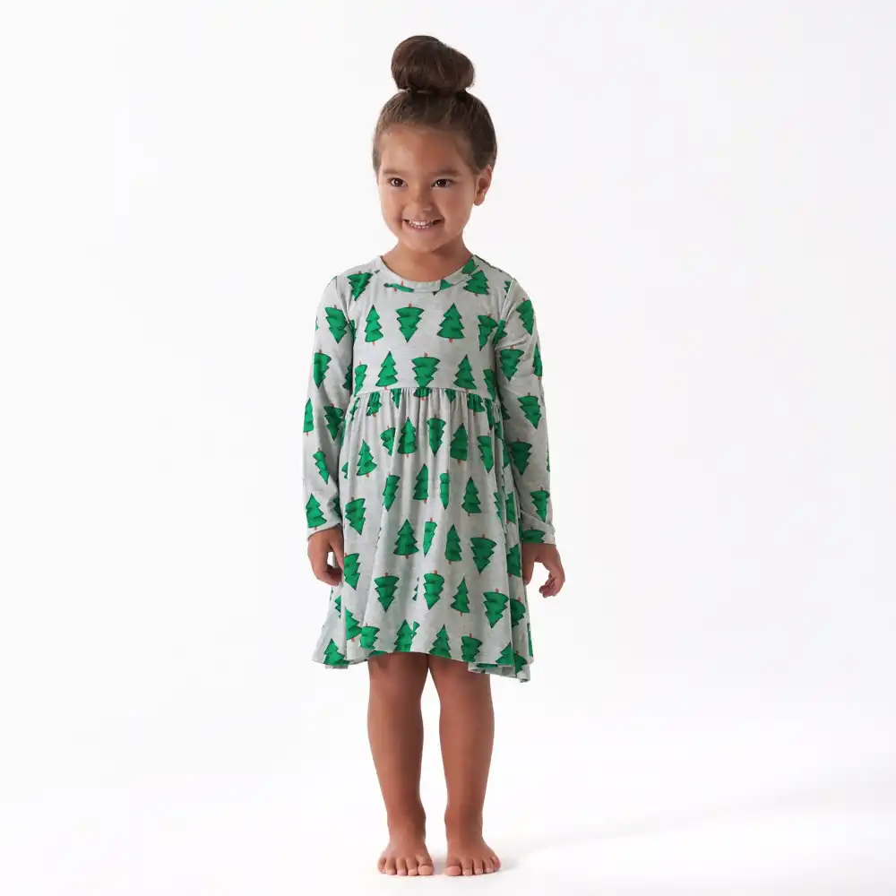 Toddler Girls Spruce Buttery Soft Viscose Made from Eucalyptus Holiday Twirl Dress