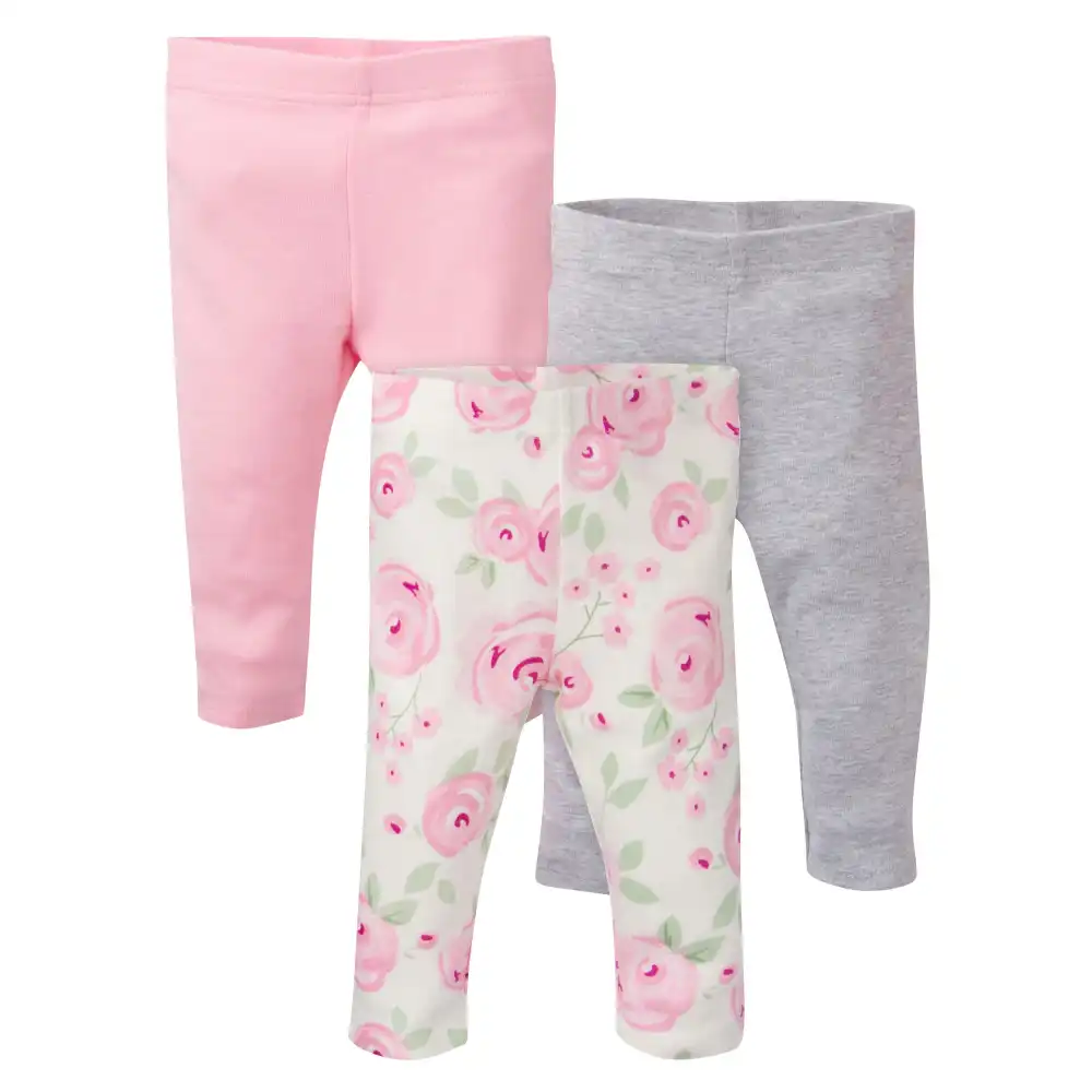 3-Pack Baby Girls Pink, Gray, & Floral Leggings, NEWBORN