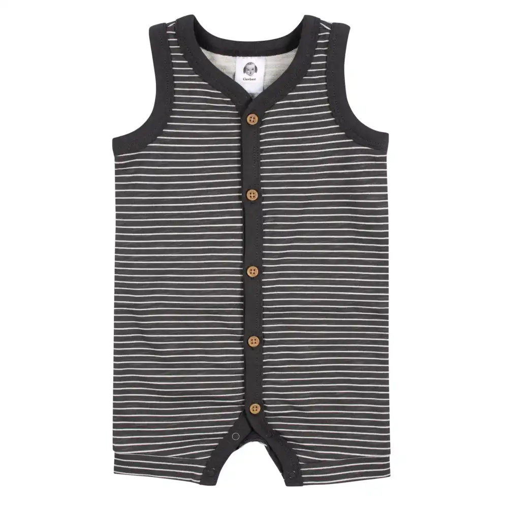 2-Pack Baby Boys Tan & Dark Gray Short Leg Sleeveless Romper, 24M