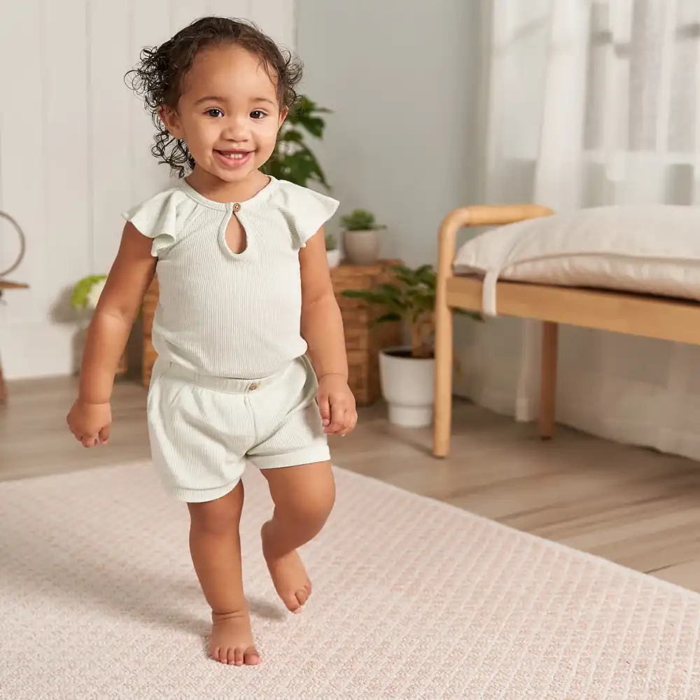 2-Piece Baby Girls Light Oatmeal Heather Bodysuit and Shorts Set
