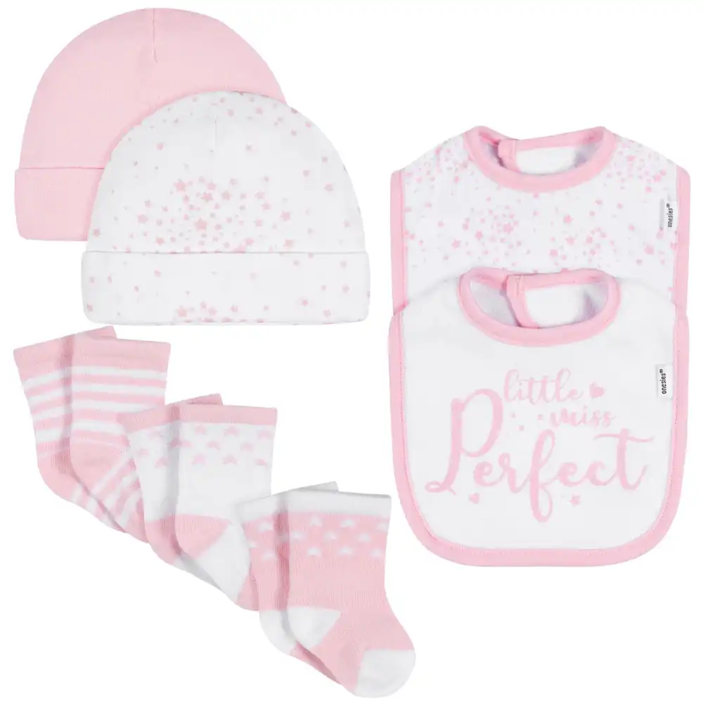 7-Piece Baby Girls Stars Caps, Dribbler Bibs, Jersey Crew Socks