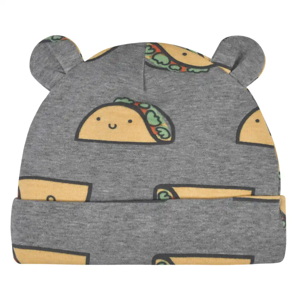 4-Piece Baby Neutral Comfy Stretch Taco Caps & No Scratch Mittens Set