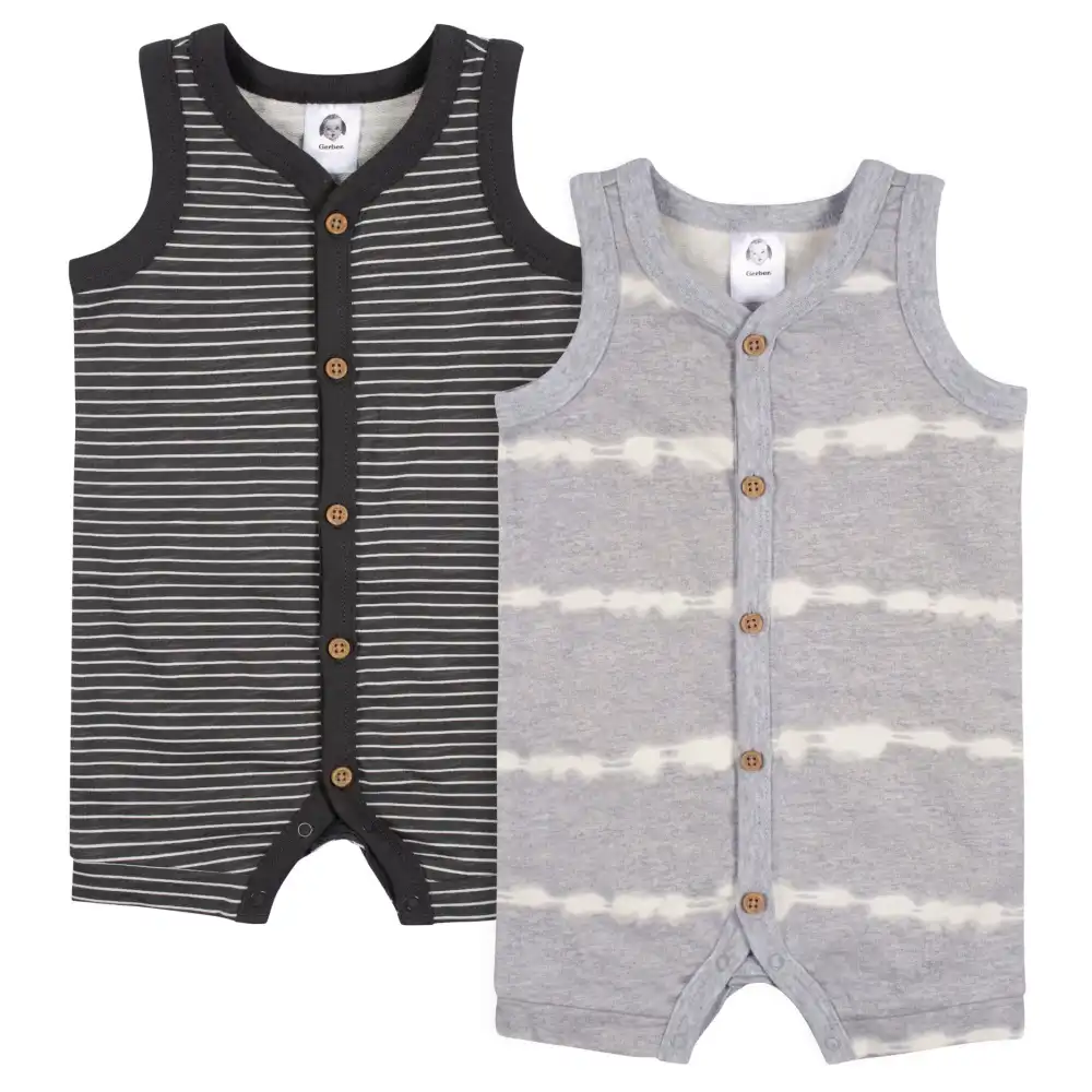 2-Pack Baby Boys Heather Gray Tie Dye & Striped Short Leg Sleeveless Romper