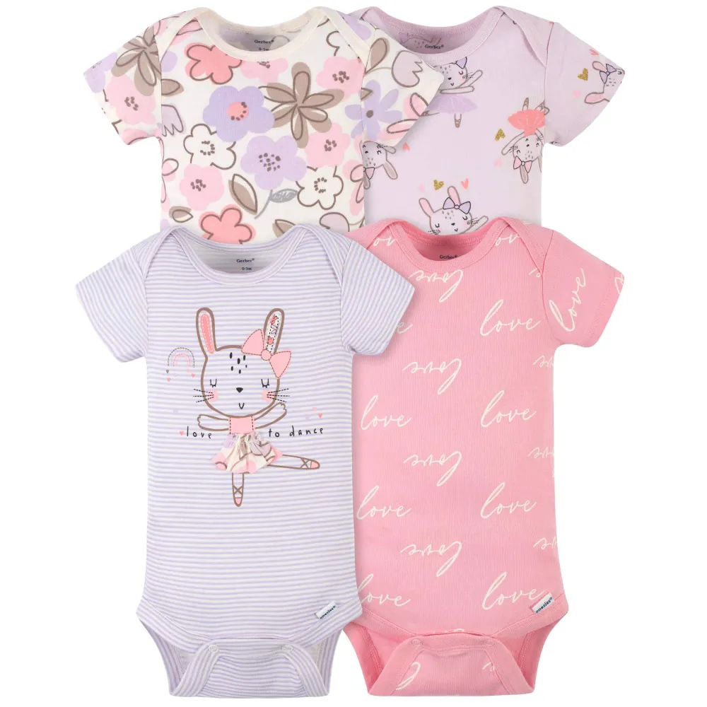 4-Pack Baby Girls Bunny Ballerina Short Sleeve Onesies® Bodysuits