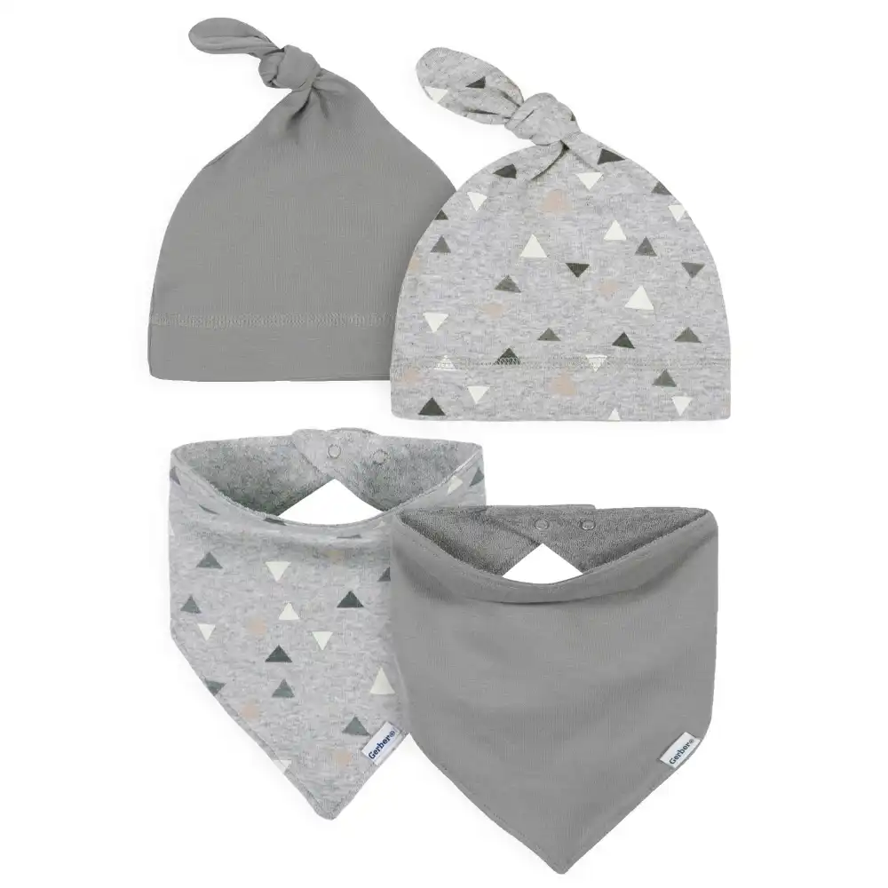 4-Piece Baby Boys Triangle Caps and Bibs Set