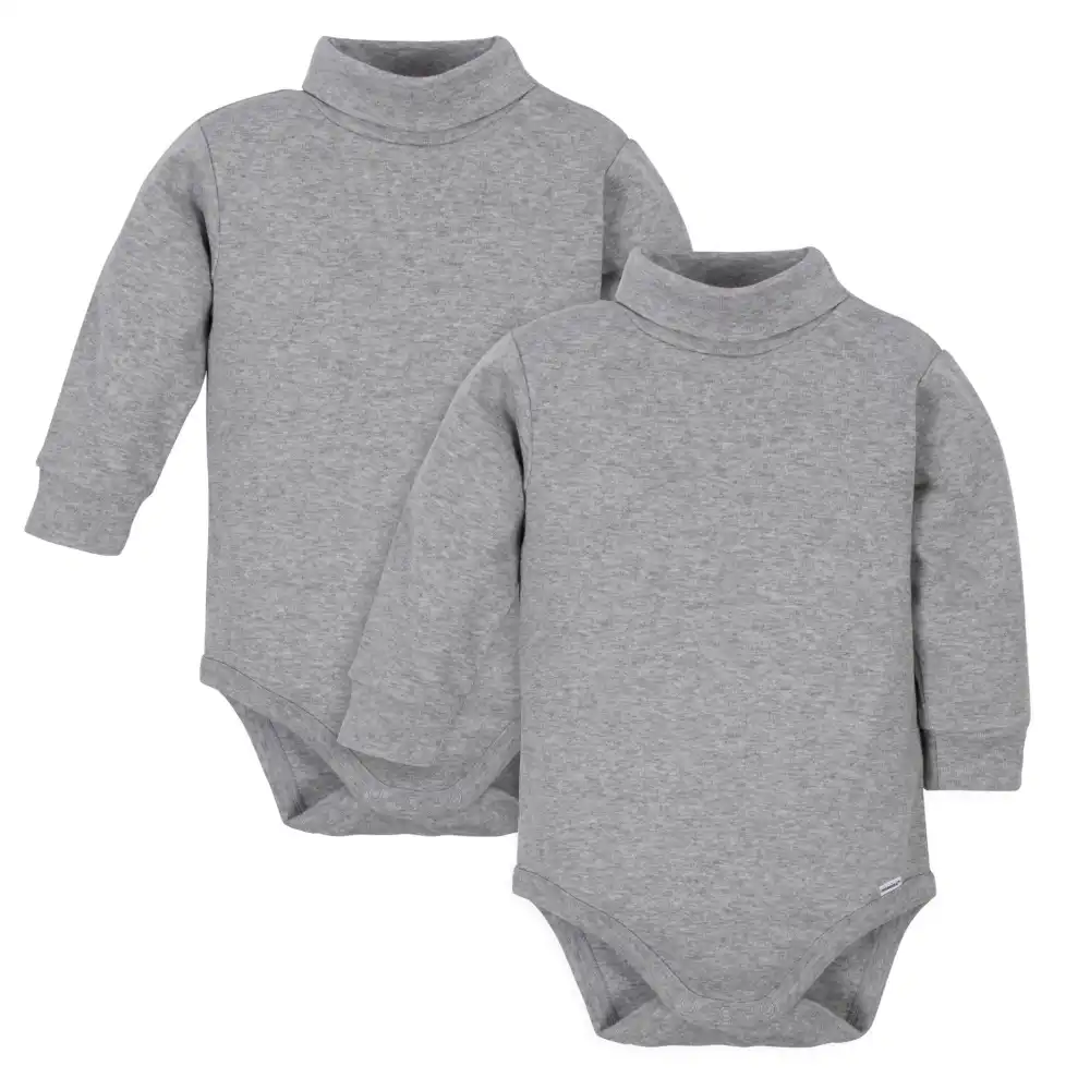 2-Pack Baby & Toddler Neutral Grey Heather Long Sleeve Turtleneck Onesies® Bodysuits