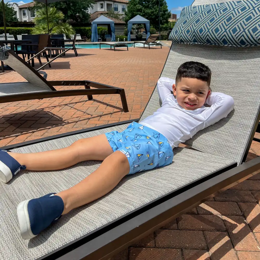 This duo of swim trunks provides an ideal solution for your baby boy or toddler boy to fully enjoy a sunny day of water fun. Whether you're on a beach vacation, lounging poolside, or playing water games at home, these swim trunks ensure sun protection with UPF 50+ fabric and comfort-enhanced mobility through a stretchy waistband. Conveniently, they're easy to machine wash, allowing for swift cleanup after each fun-filled day, preparing you for the next adventure. Our essentials have been independently certified with STANDARD 100 by OEKO-TEX® so that you don’t have to worry about harmful substances in your baby’s wardrobe. This pack includes two swim trunks.