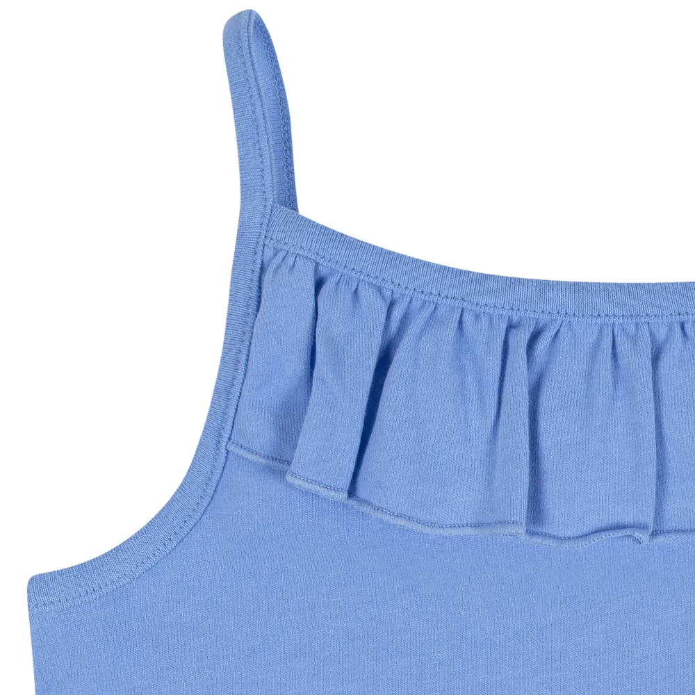 Our 2-pack sleeveless tops are the perfect spring and summer staple! Each top is designed for easy dressing and all-day comfort, perfect for infants and toddlers. We use STANDARD 100 by OEKO-TEX® certification on products tested in an independent laboratory against a list of more than 400 harmful substances, including PFAS. Pair these shades of blue tops with our coordinating printed or solid leggings and shorts for all day play!